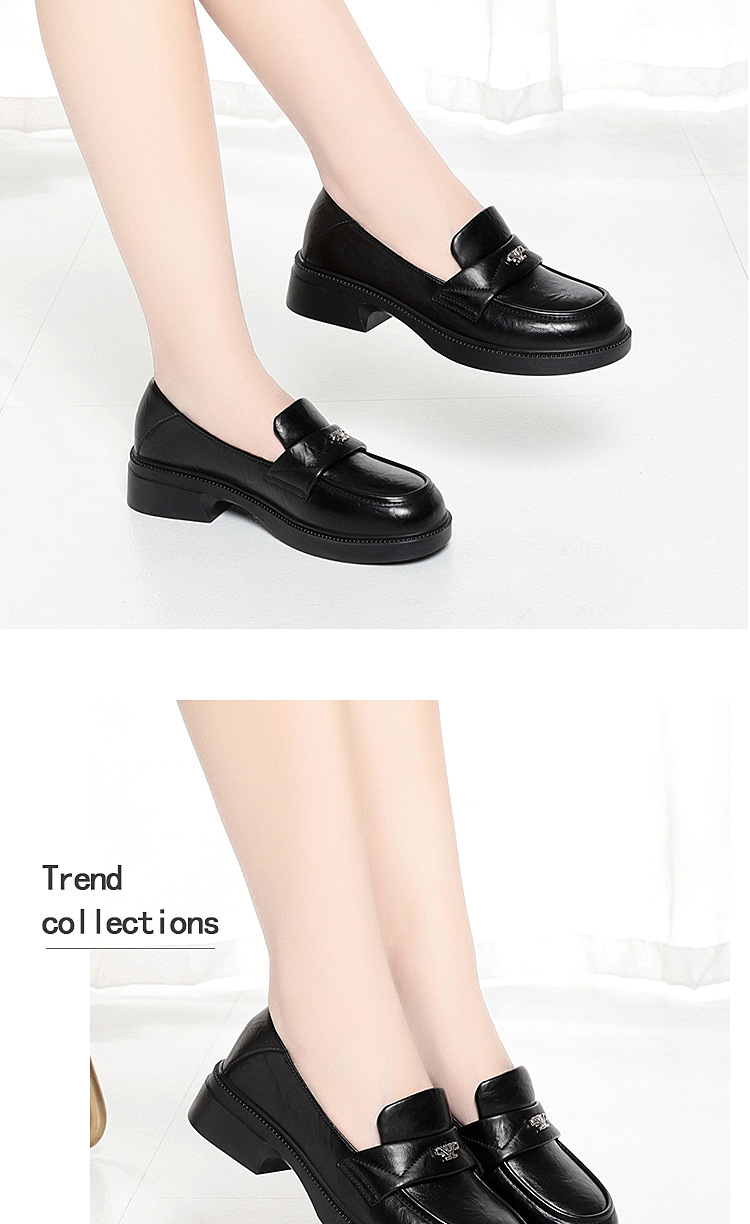 봄의 새로운 영국 캐주얼 조커 작은 가죽 신발 두꺼운 힐 조커 신발 숙녀 두꺼운 밑창 로퍼