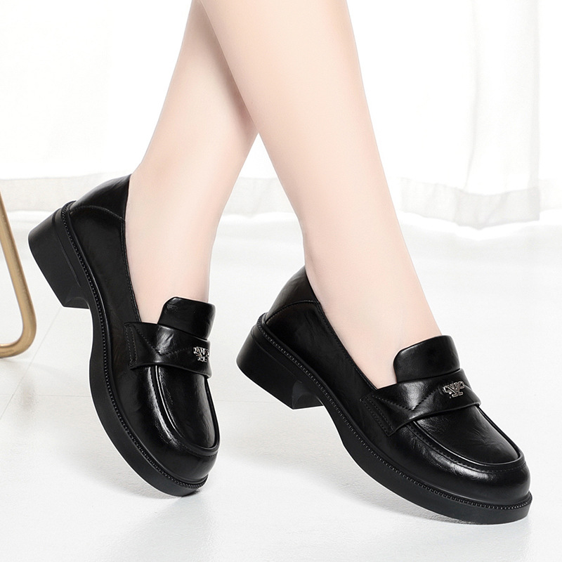 봄의 새로운 영국 캐주얼 조커 작은 가죽 신발 두꺼운 힐 조커 신발 숙녀 두꺼운 밑창 로퍼스토어 가기