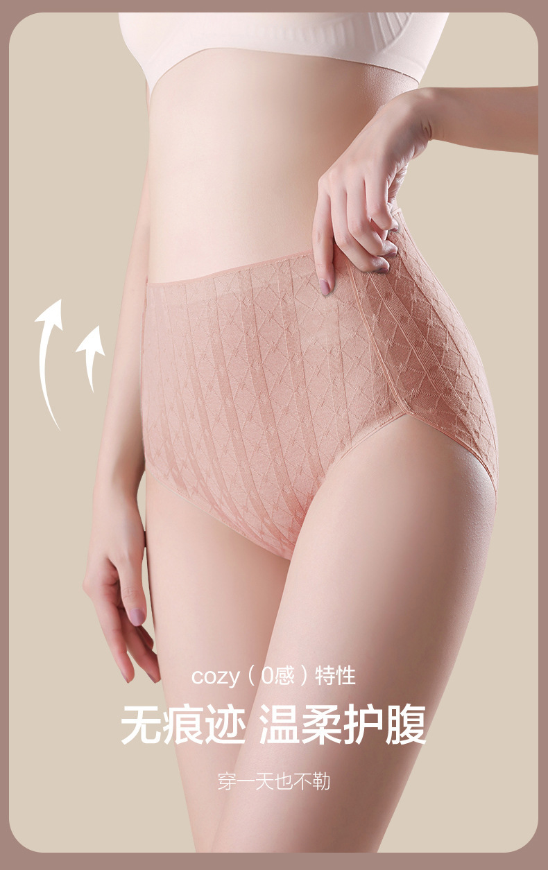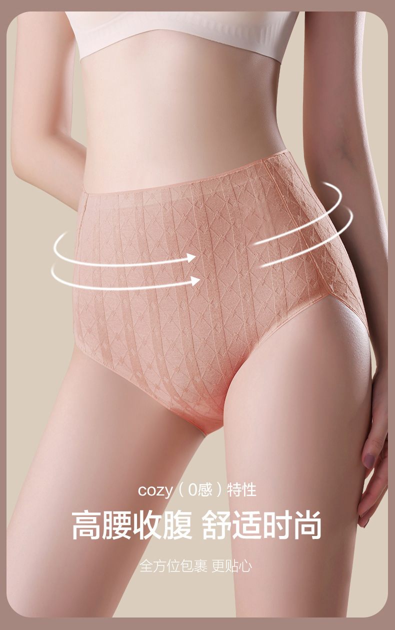 여성용 하이웨이스트 뱃살 조절 심리스 순면 속옷, 항균 확장 가랑이 팬티, 피부 친화적인 통기성 면 반바지