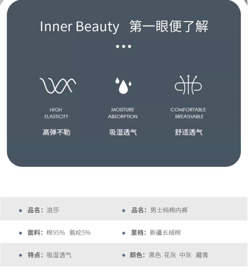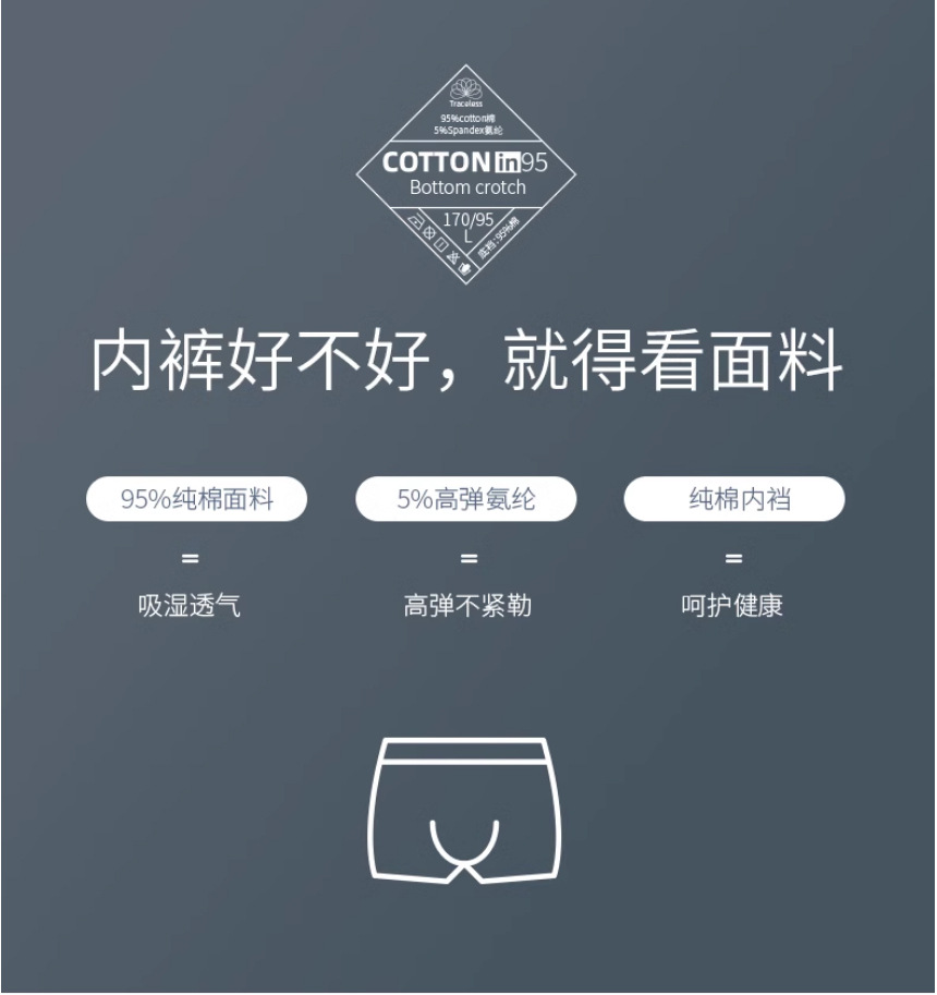 独立包装 面料:96%棉+4%氨纶; 裆里:96%棉+4%氨纶