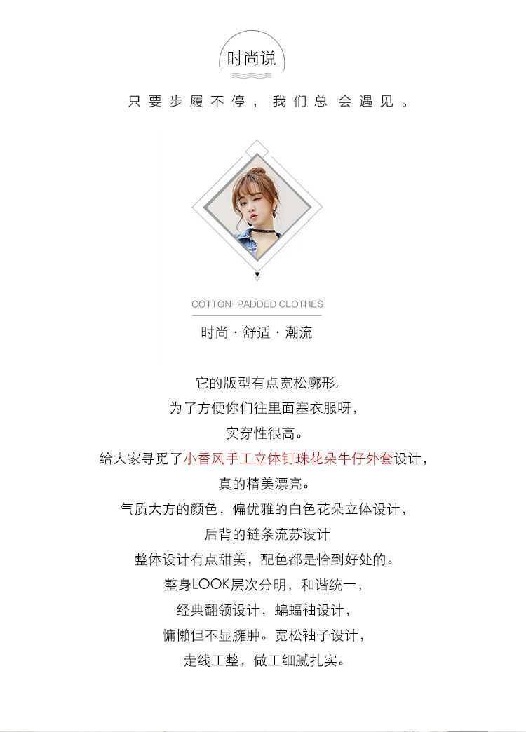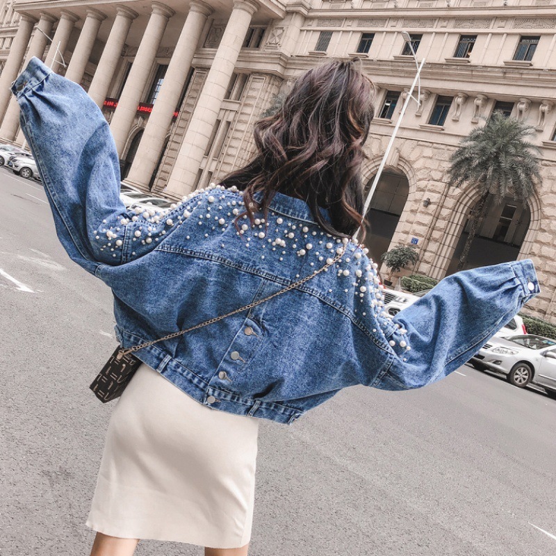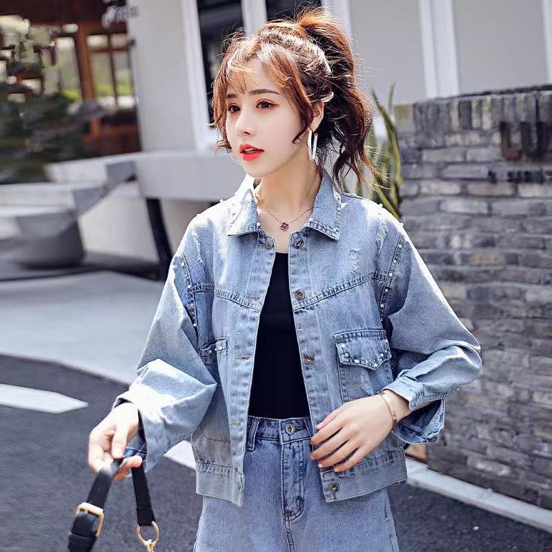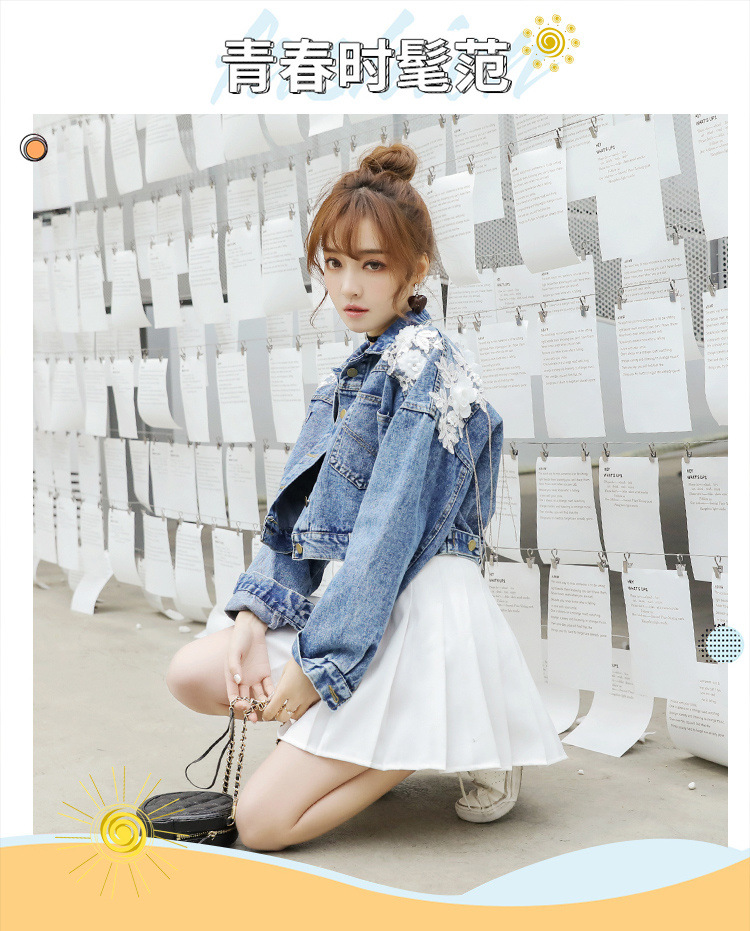홍콩 스타일 봄과 가을 새로운 한국 스타일 3 차원 꽃 자수 체인 술 느슨한 가슴 소매 데님 여성용 짧은 자켓스토어 가기