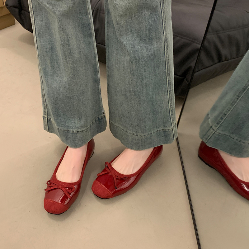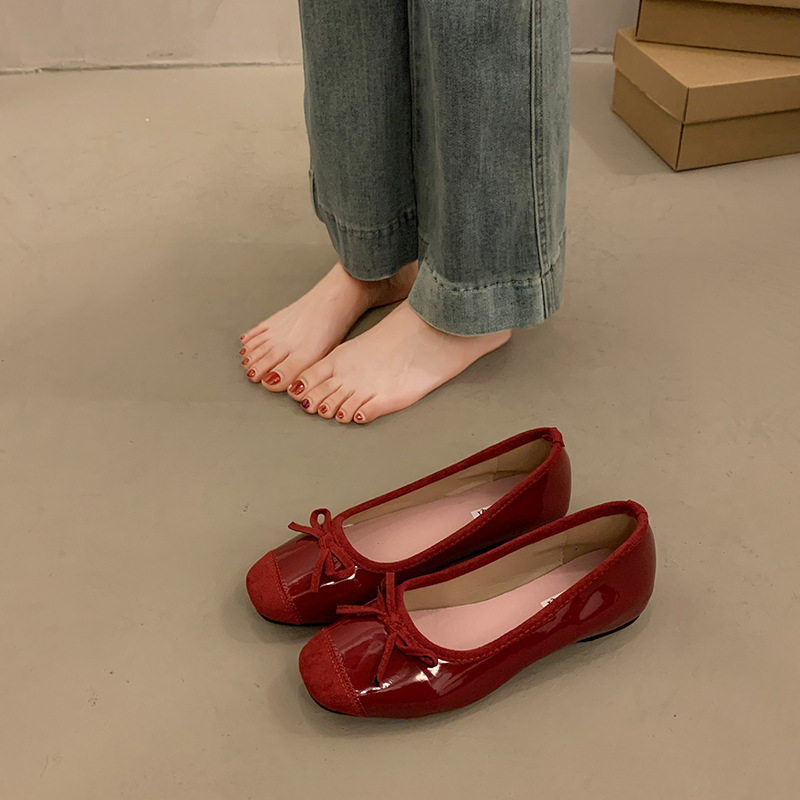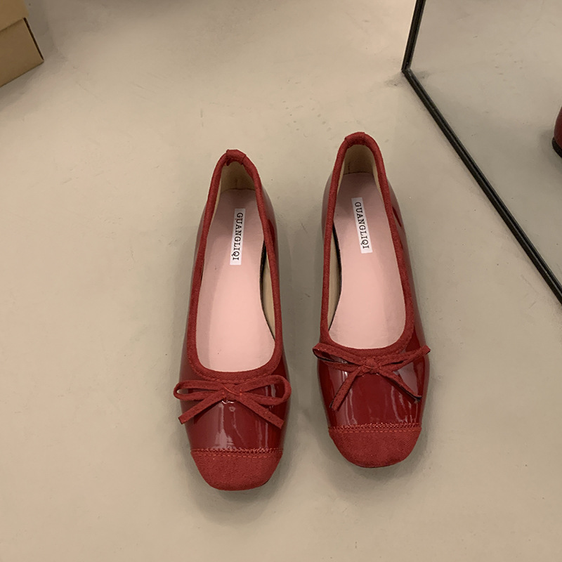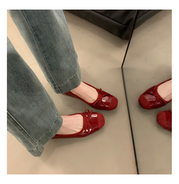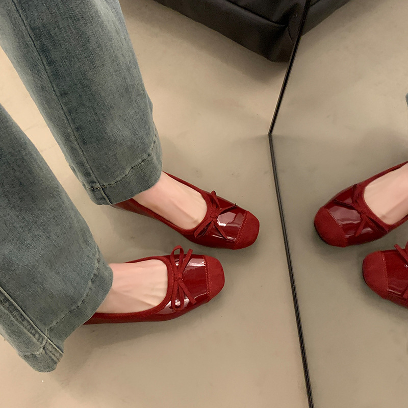 내부 높이 증가 프랑스 스타일 작은 빨간 단일 신발 여성 신발 2025 새로운 봄과 가을 복고풍 발레 부드러운 저녁 신발스토어 가기