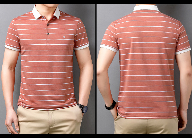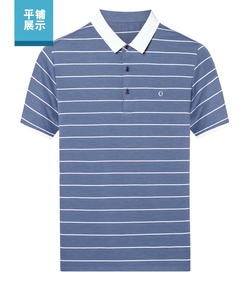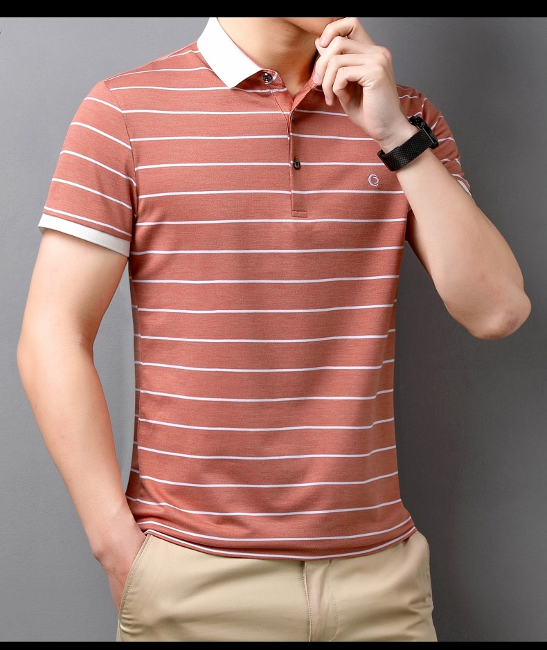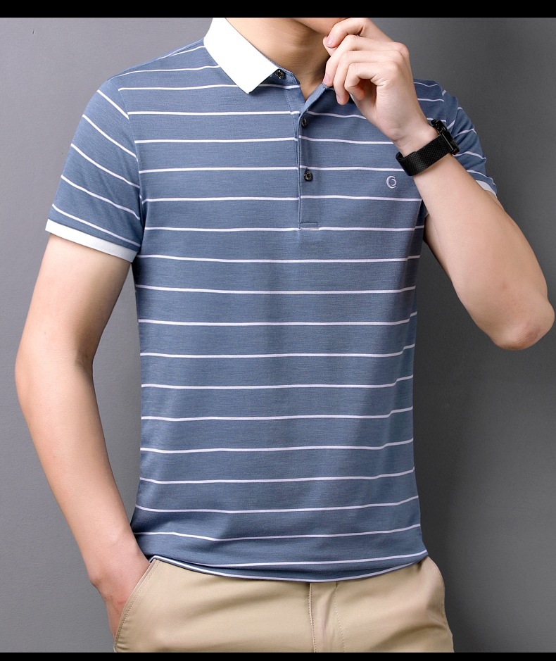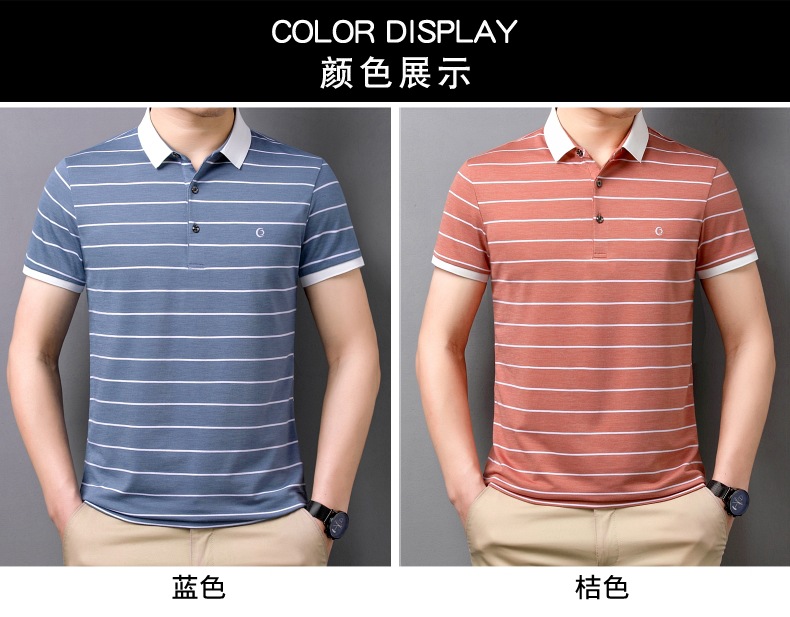 고급 뽕나무 실크 여름 남성 POLO 셔츠 비즈니스 캐주얼 스트라이프 비 아이언 남성 반팔 탑스토어 가기