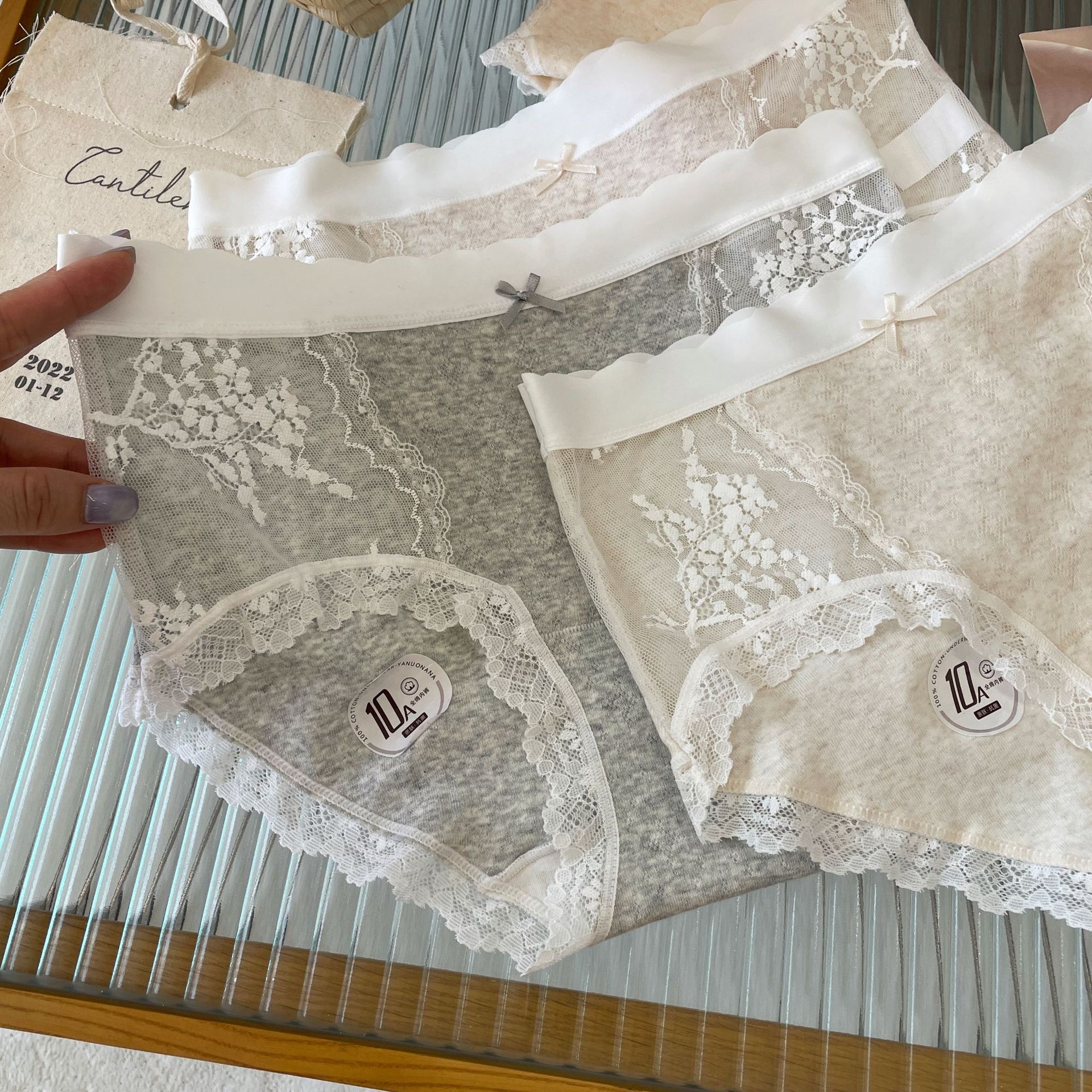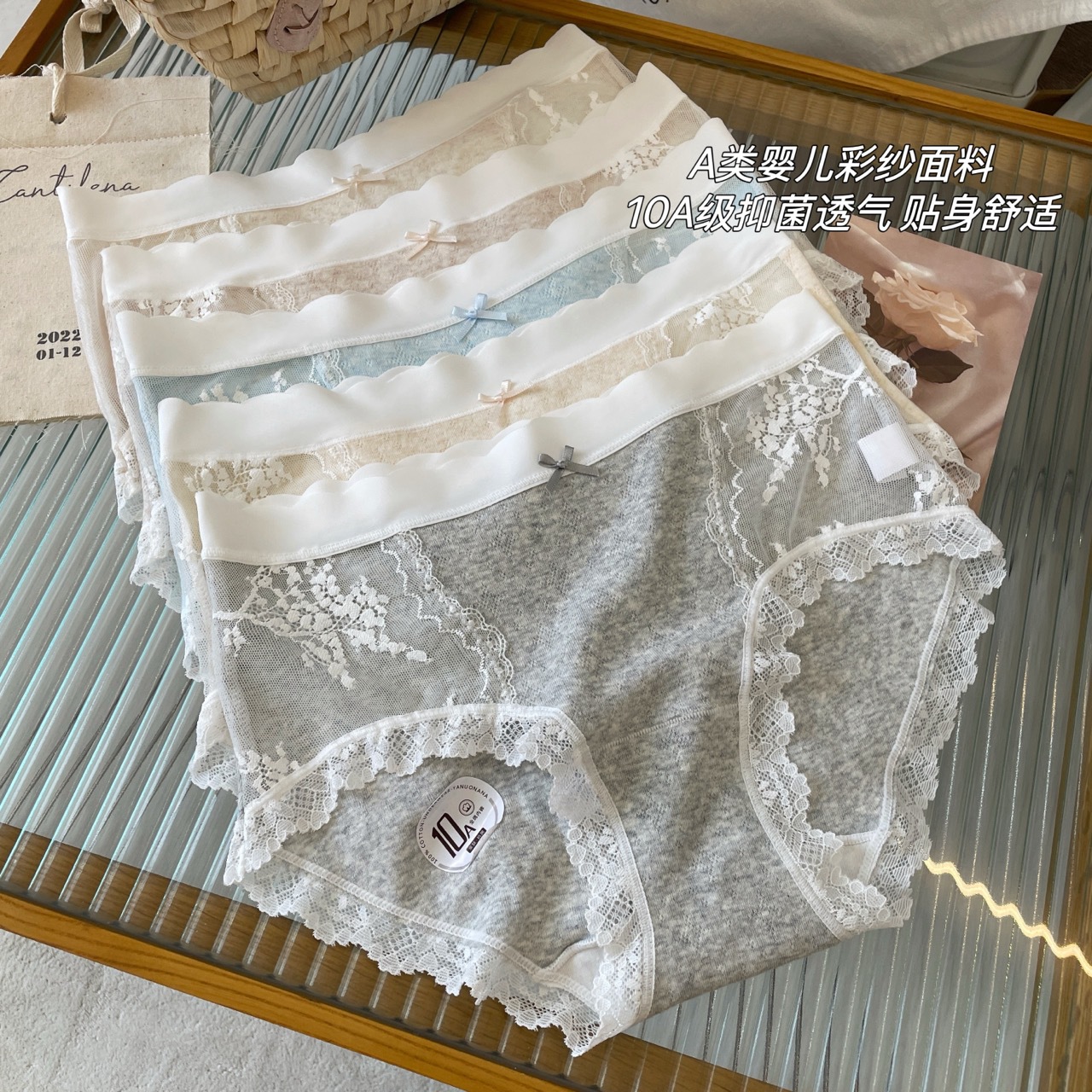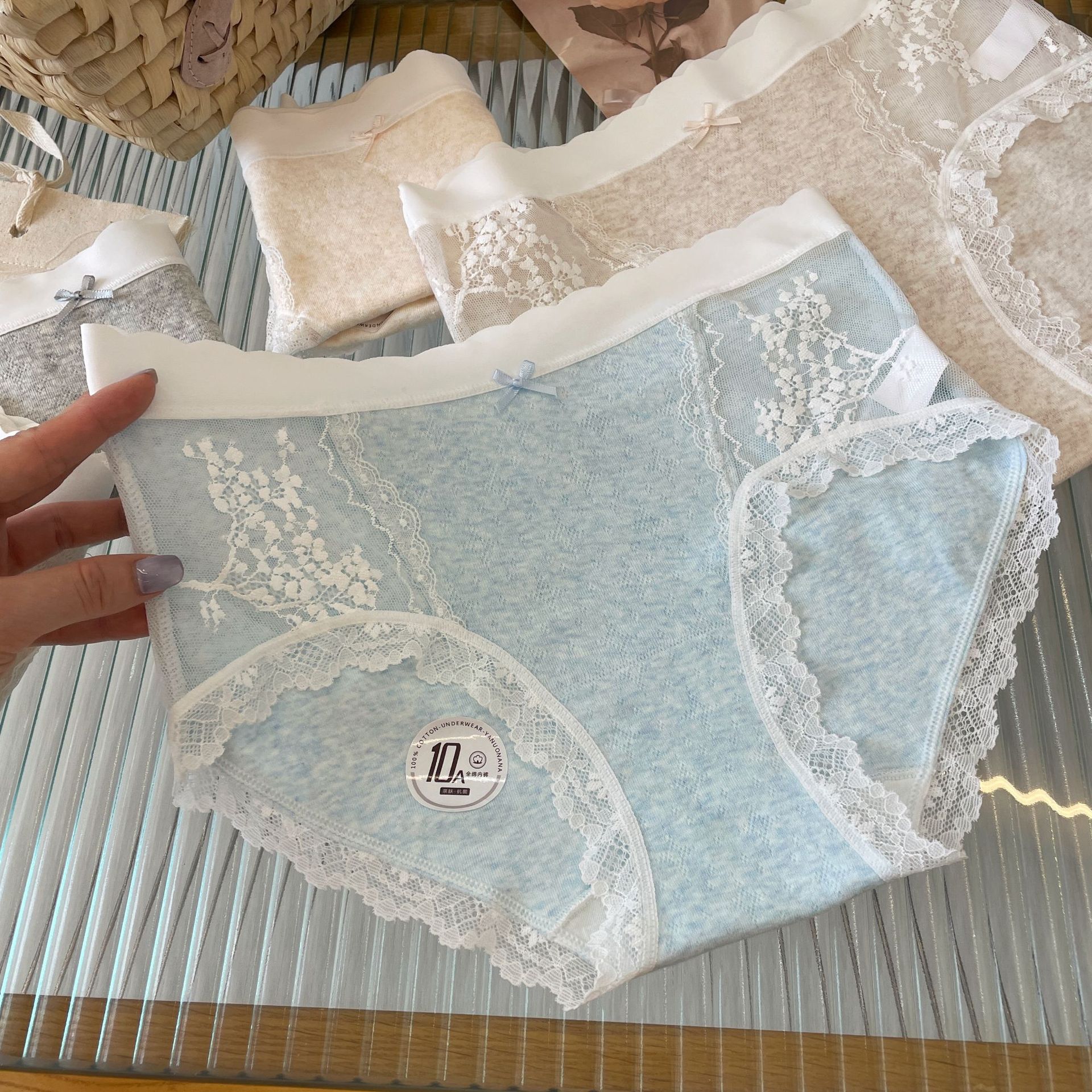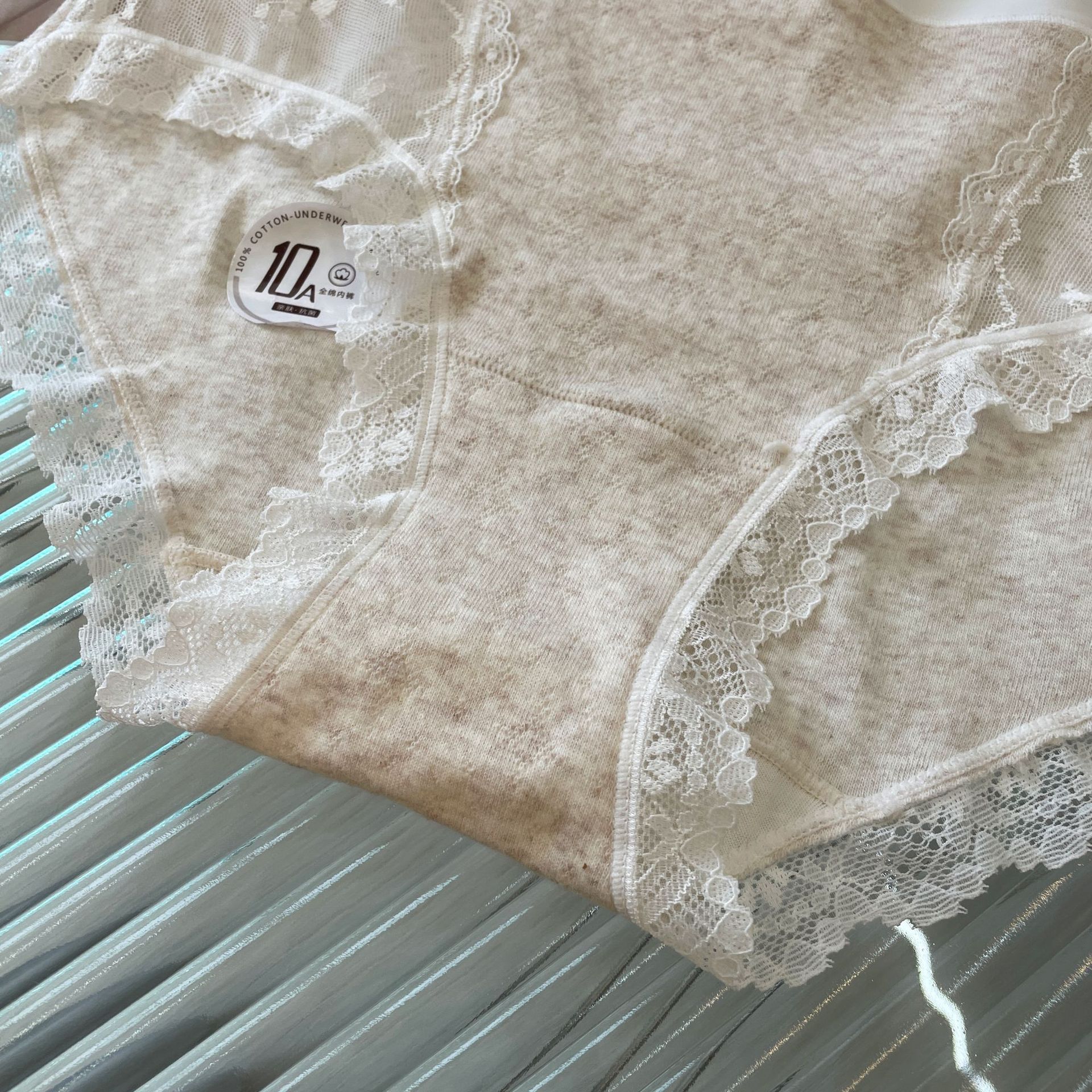 10A 항균 여성면 속옷 자연색 원사 컬러 면 속옷 제로 염색 중간 허리 레이스 길쭉한면