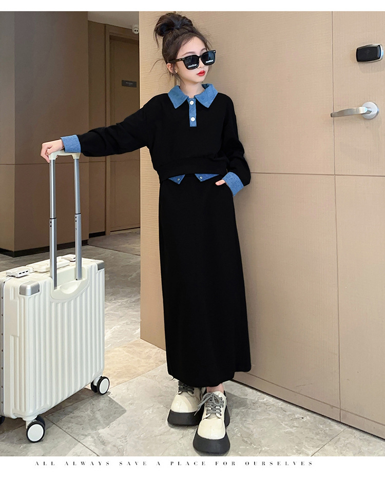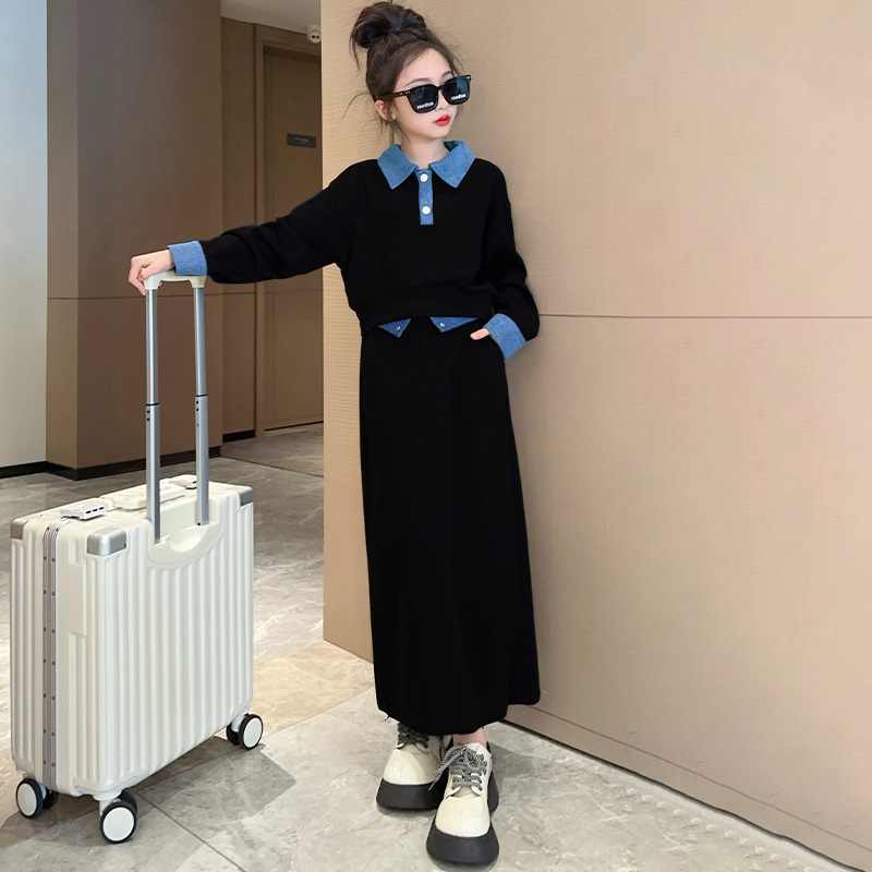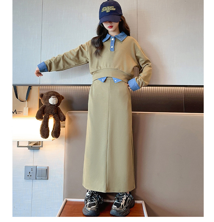 소녀의 봄 옷 세트 2025 새로운 큰 어린이 여성 옷 원피스 봄과 가을 서양식 어린이 유행 소녀 유행 아동복