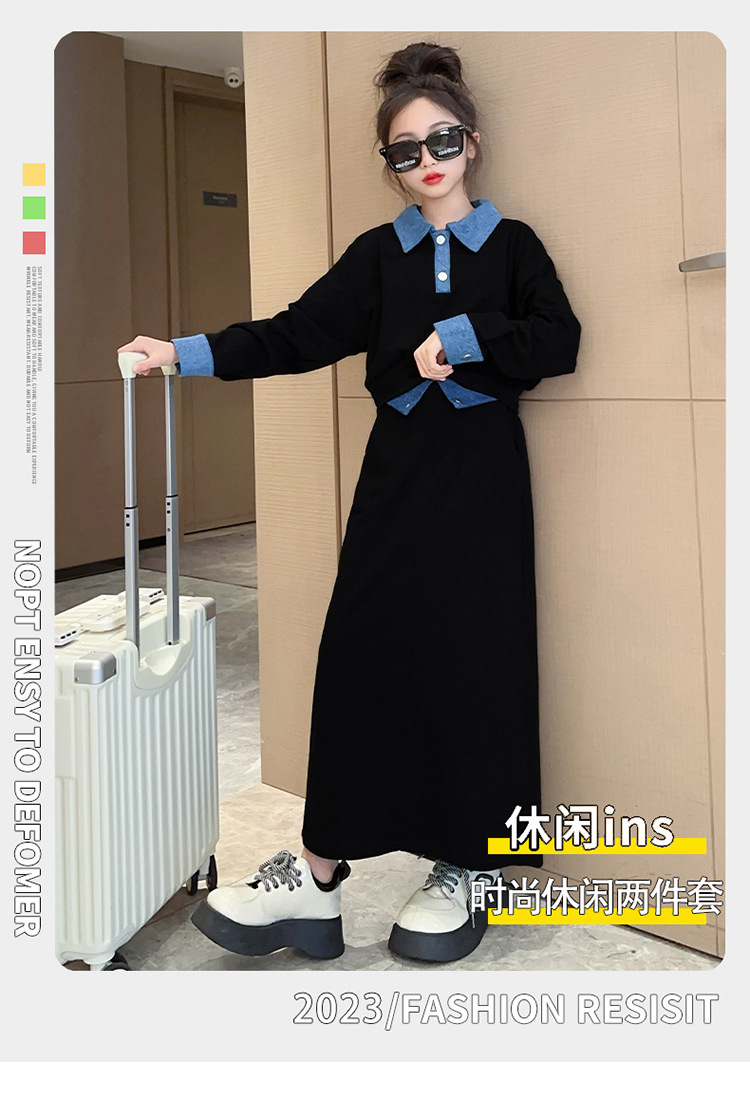 소녀의 봄 옷 세트 2025 새로운 큰 어린이 여성 옷 원피스 봄과 가을 서양식 어린이 유행 소녀 유행 아동복스토어 가기
