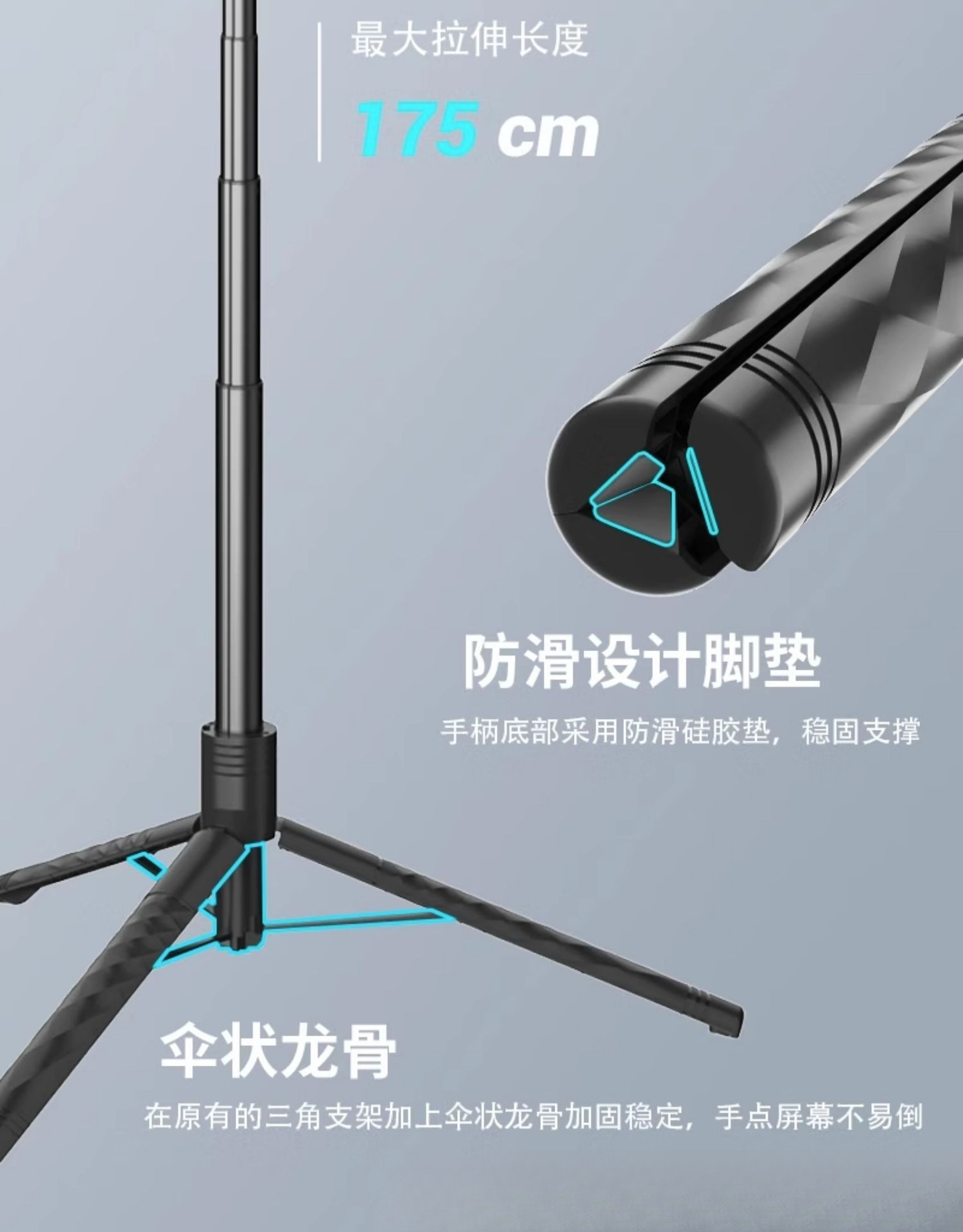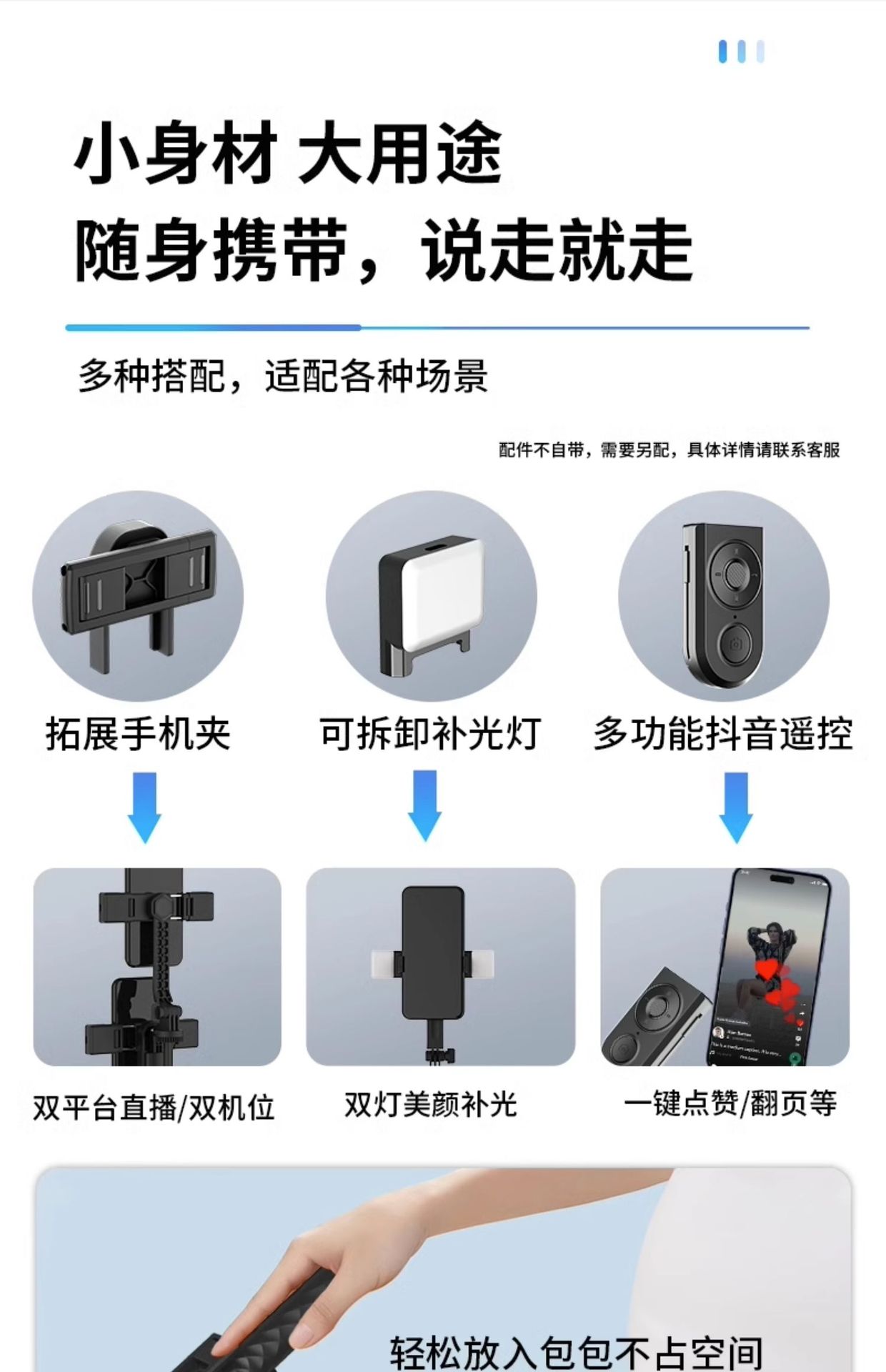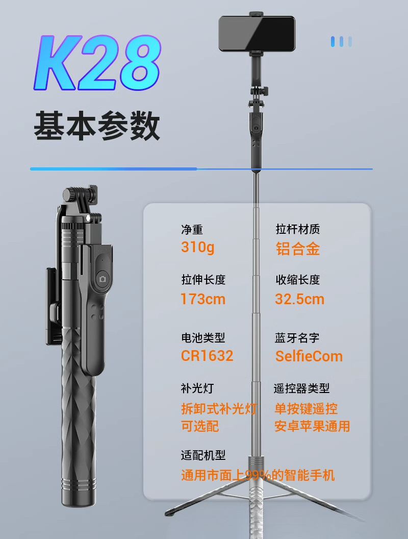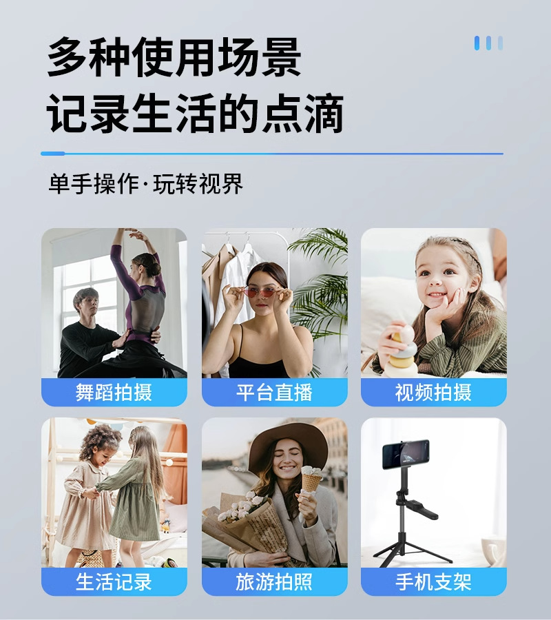• 1.7m - 스테인레스 스틸 [4축 손떨림 방지 모델]에는 범용 Douyin 리모콘이 함께 제공됩니다.