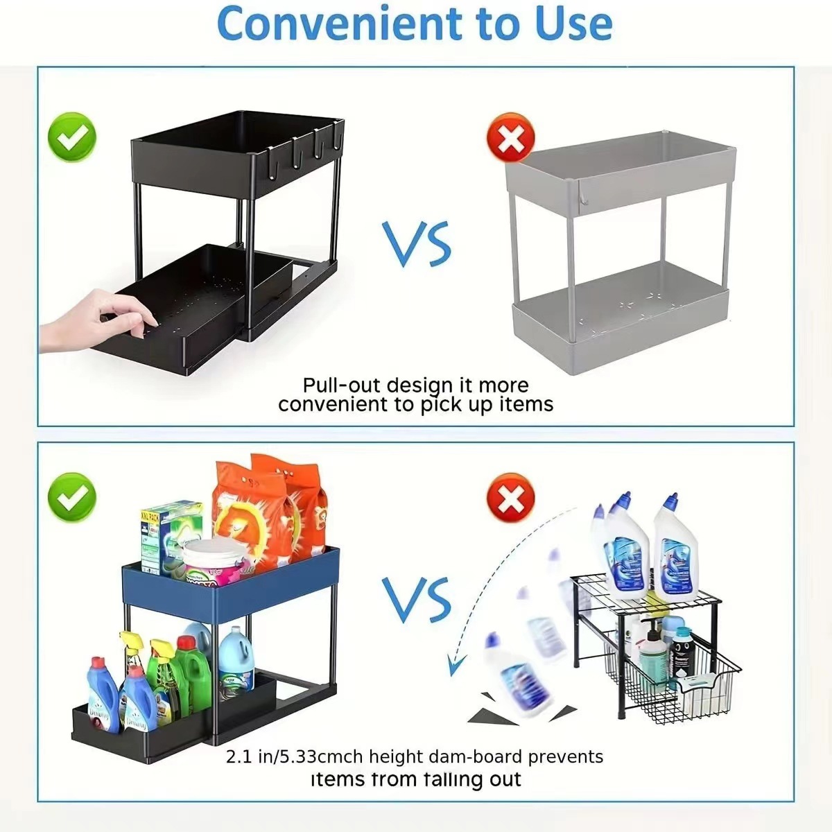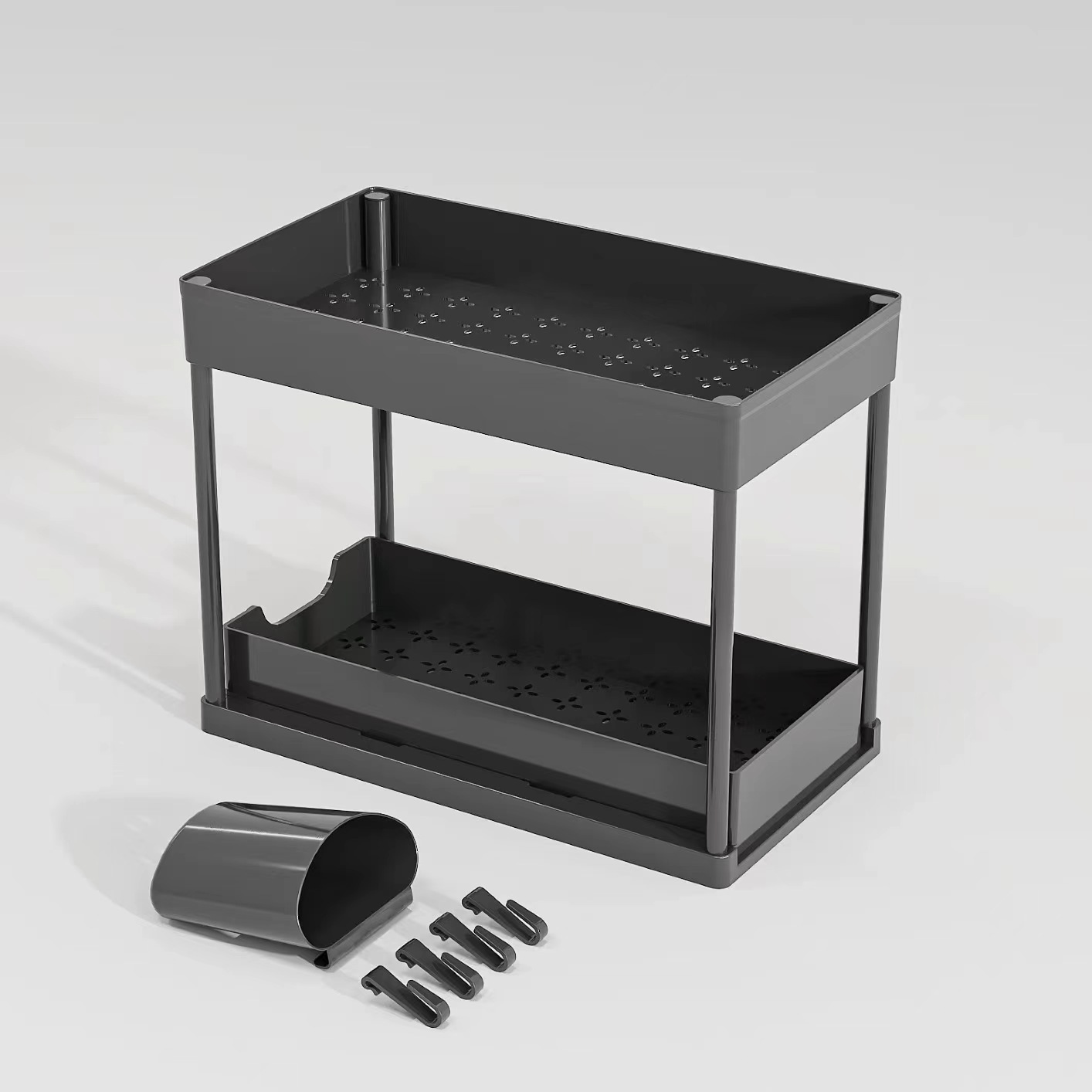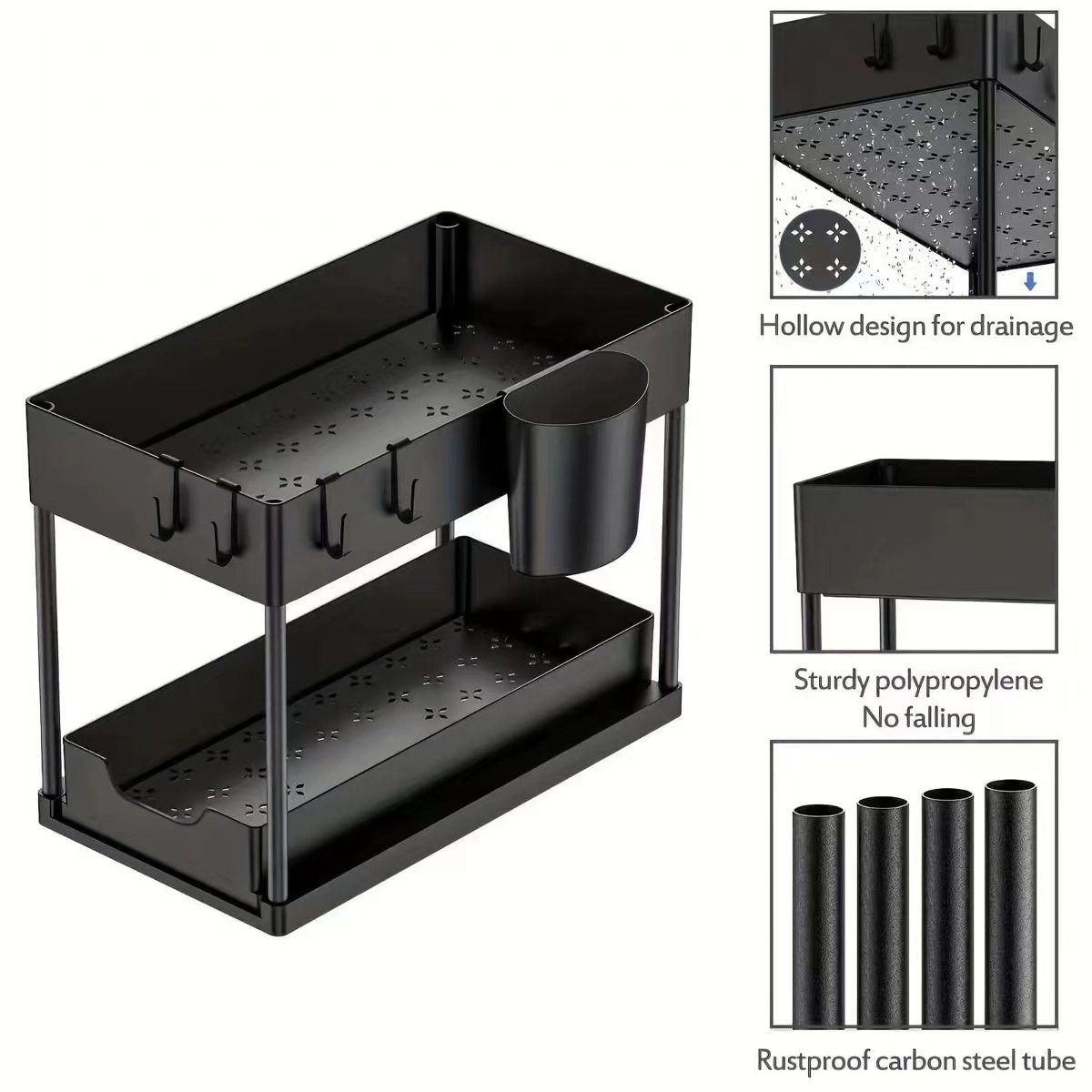 싱크대 아래 다기능 이중층 풀아웃 싱크대 선반 주방 수납 선반 조리대 정리 선반 식기 수납 선반스토어 가기