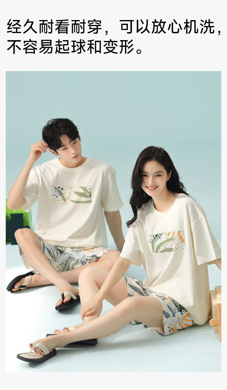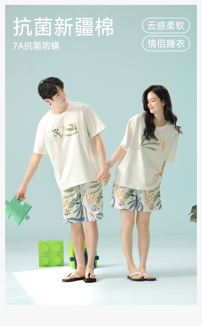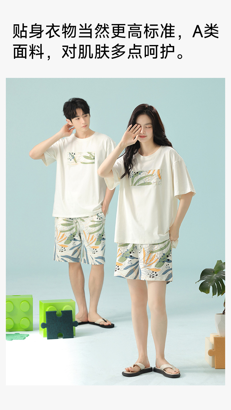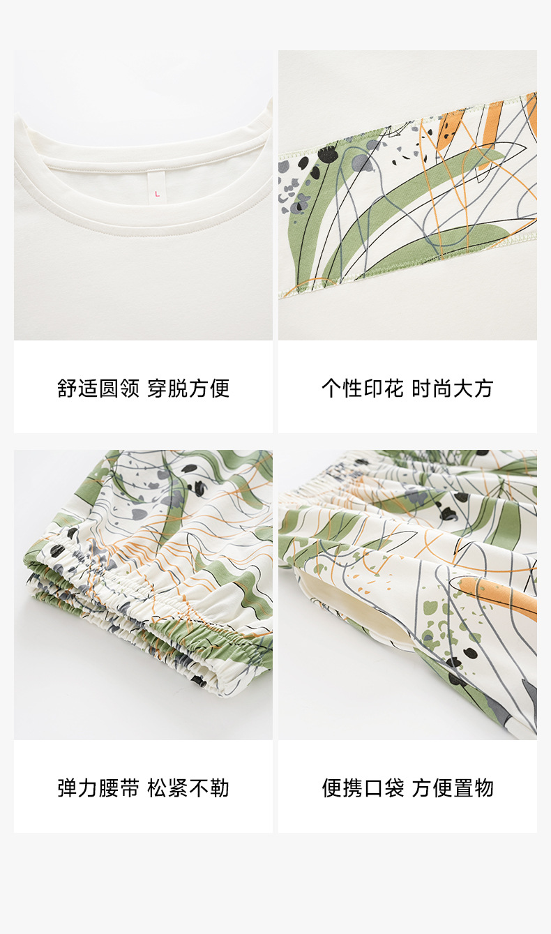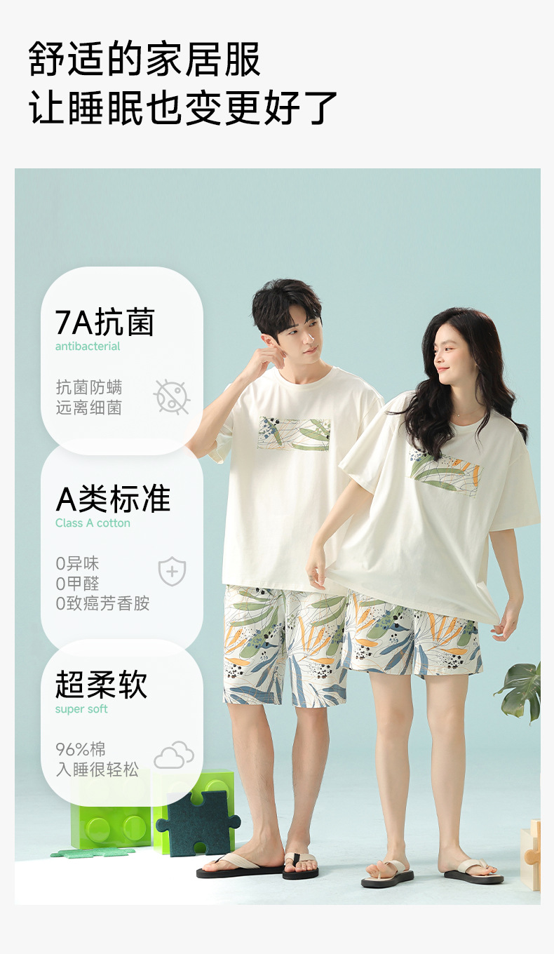 [항균성 신장면] 휴가 바람 열대 식물 여름 풀업 면화 애호가 잠옷 반팔 숙녀 집 옷
