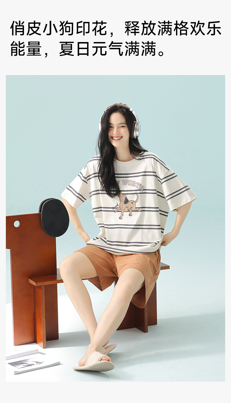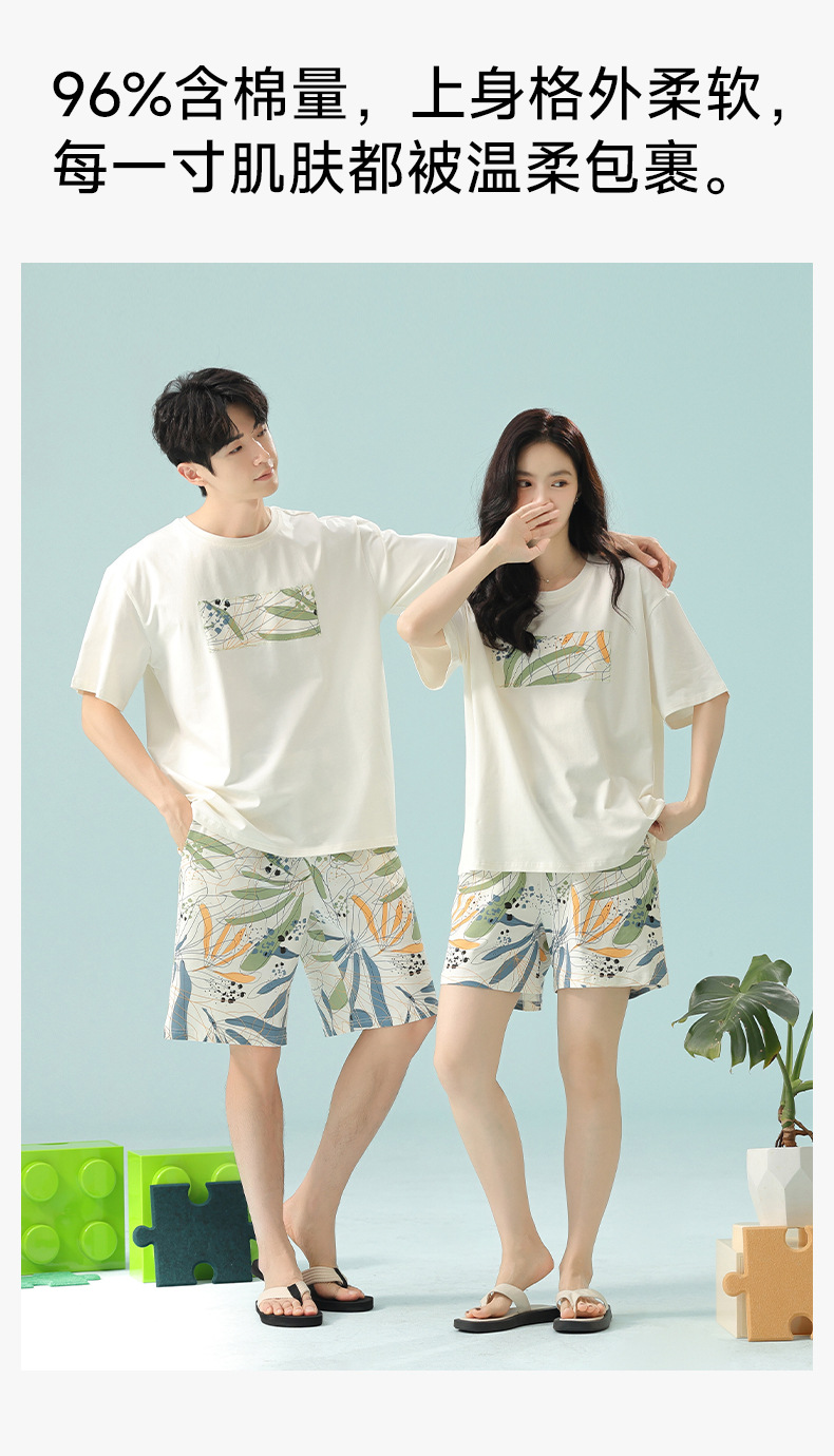 [항균성 신장면] 휴가 바람 열대 식물 여름 풀업 면화 애호가 잠옷 반팔 숙녀 집 옷스토어 가기