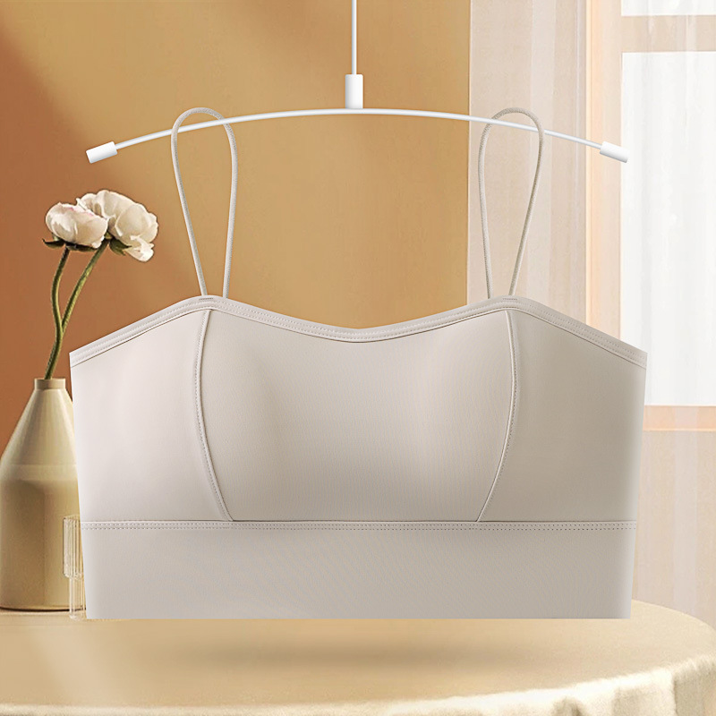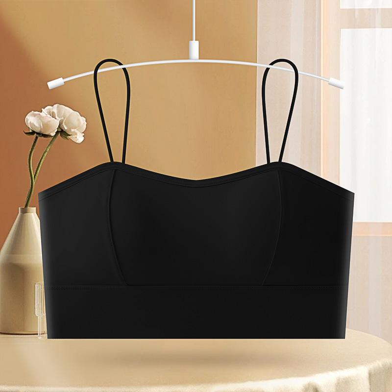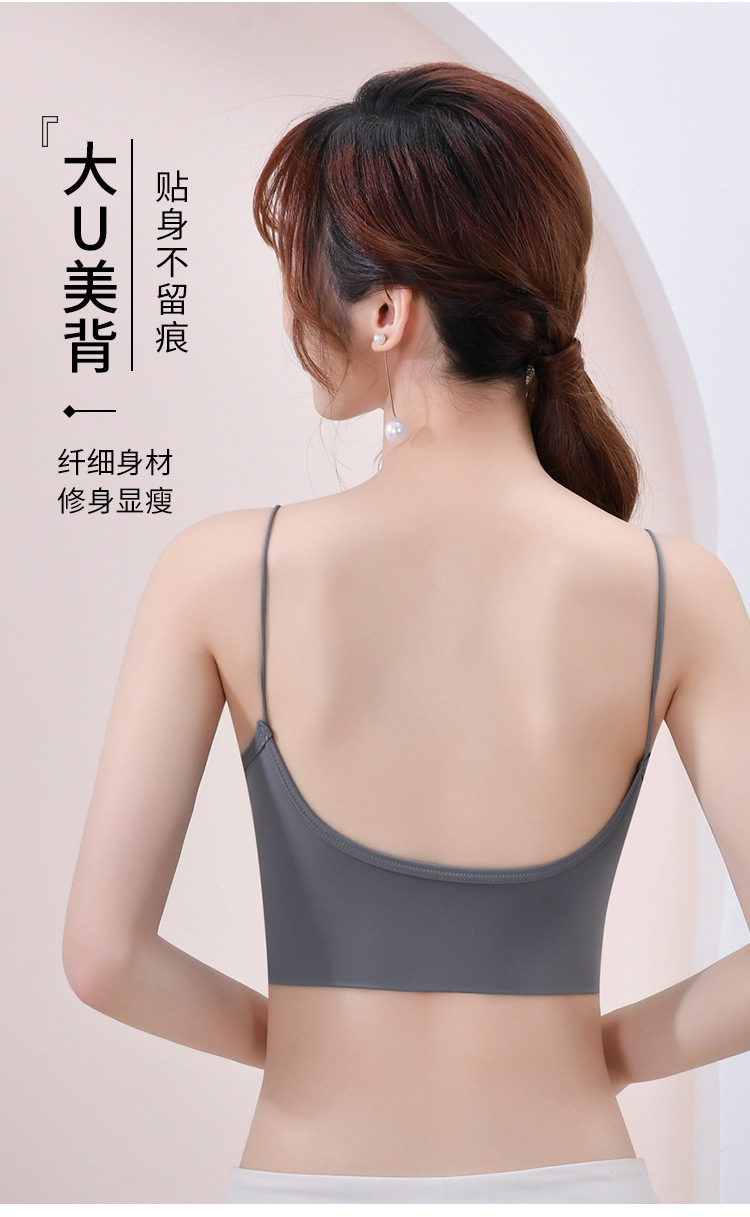아이스 실크 스파게티 스트랩 소녀 캐미솔 여름 대형 U 대형 백리스 두꺼운 가슴 패드 탈착식 바닥으로 노출 방지