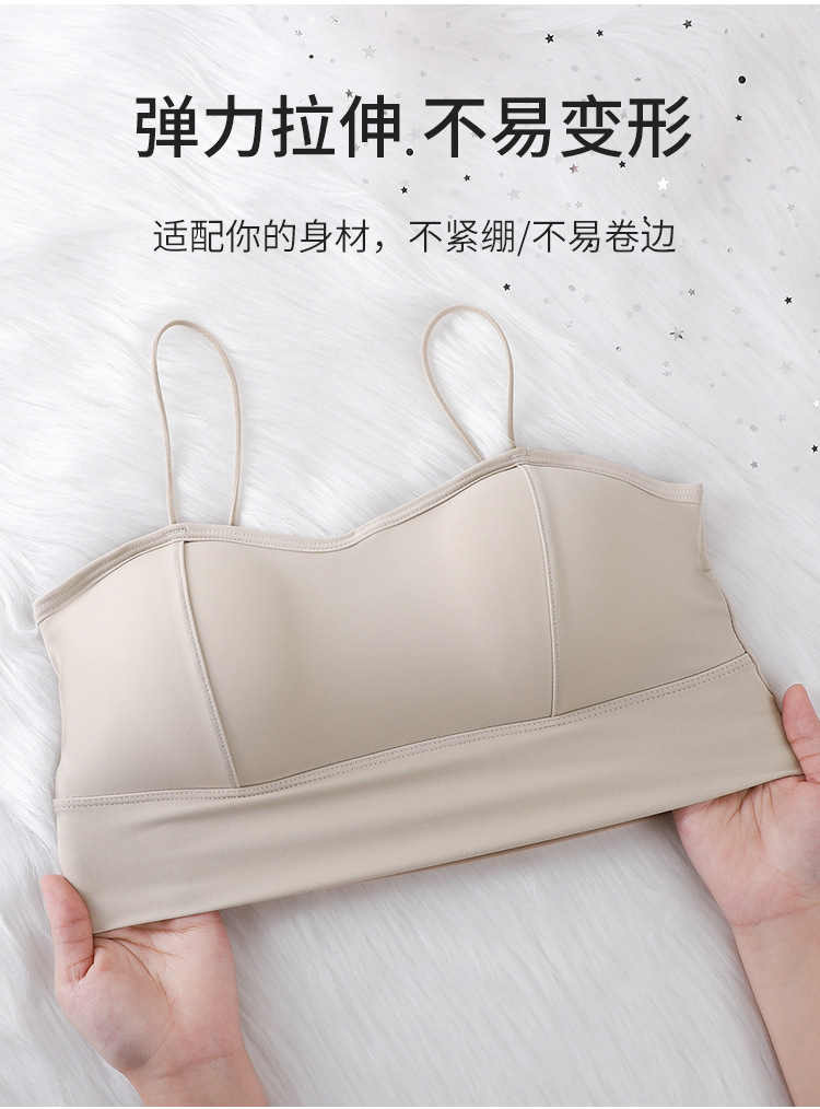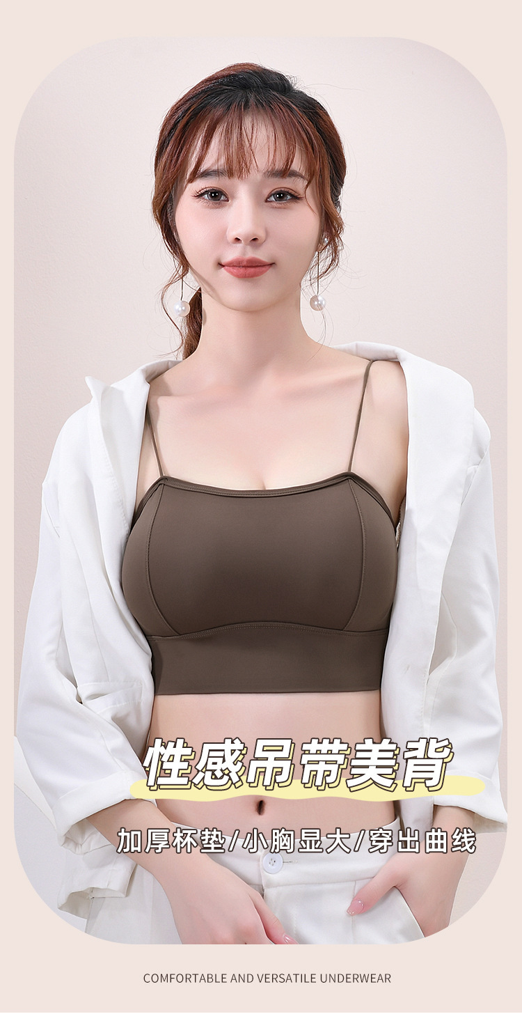 아이스 실크 스파게티 스트랩 소녀 캐미솔 여름 대형 U 대형 백리스 두꺼운 가슴 패드 탈착식 바닥으로 노출 방지스토어 가기