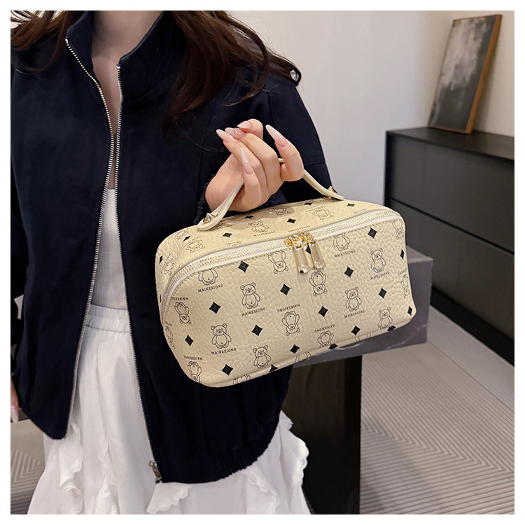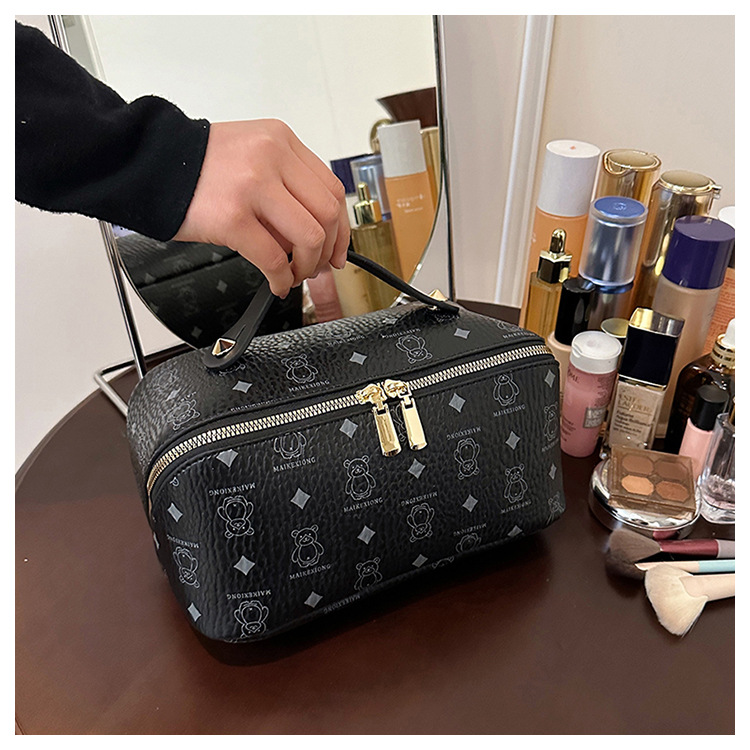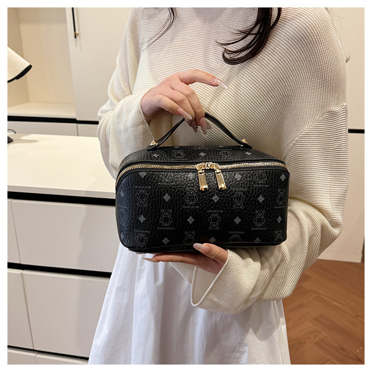 국경 간 PU 베어 다이아몬드 베개 화장품 가방 여성의 새로운 레트로 올 매치 저장 가방 대용량 여행 세탁 가방스토어 가기