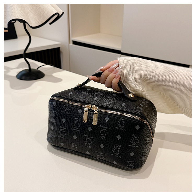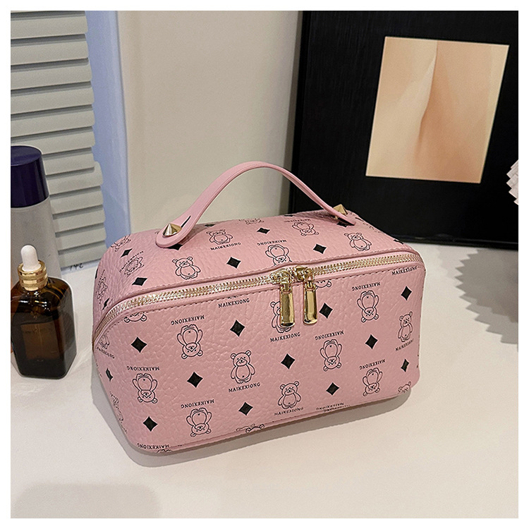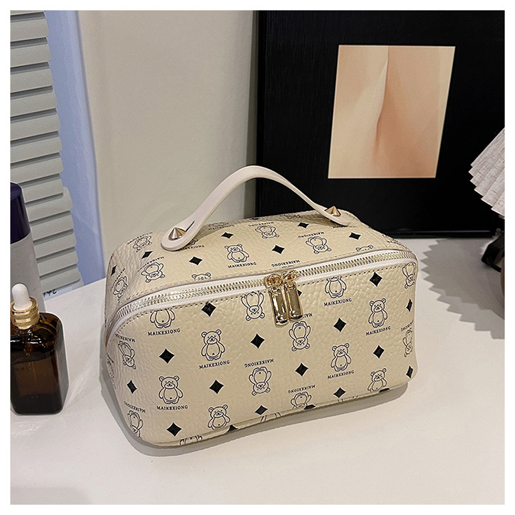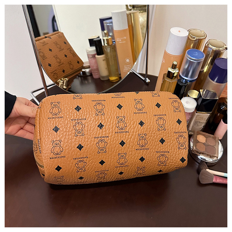 국경 간 PU 베어 다이아몬드 베개 화장품 가방 여성의 새로운 레트로 올 매치 저장 가방 대용량 여행 세탁 가방