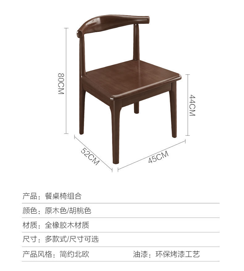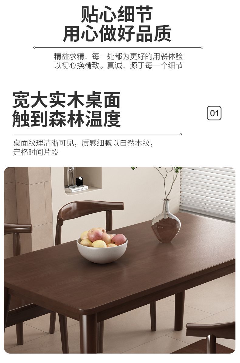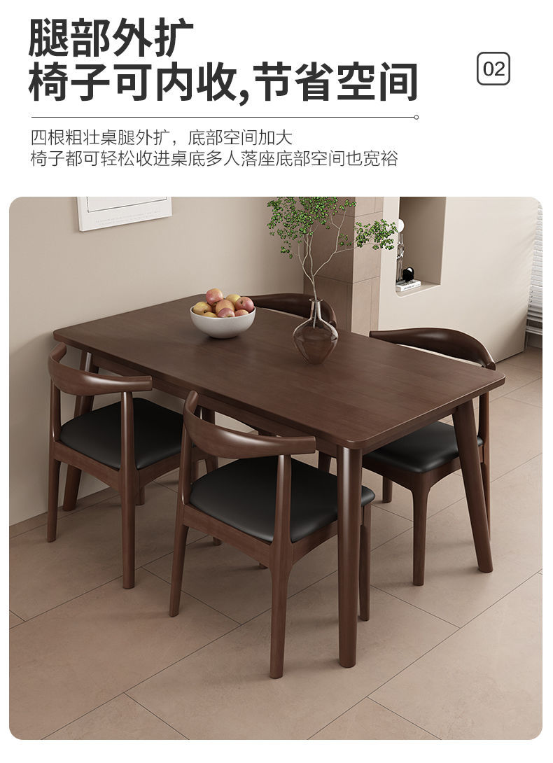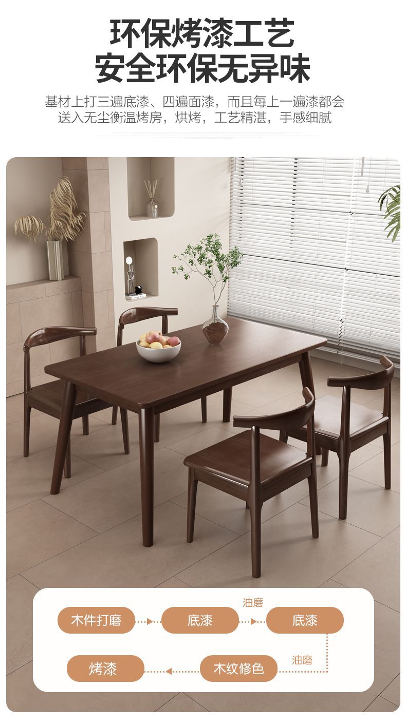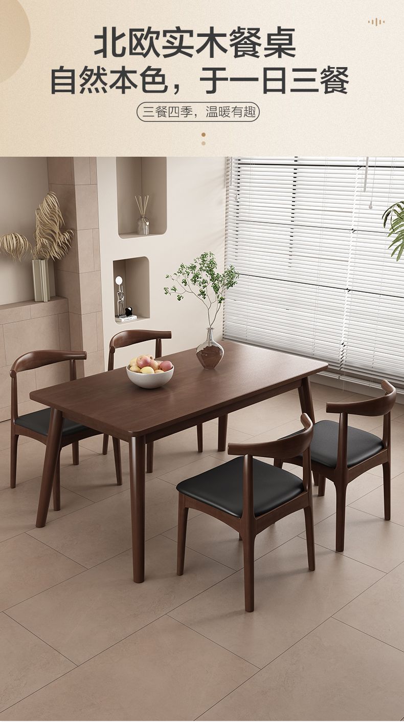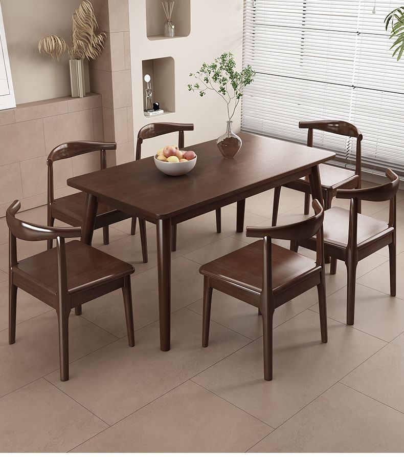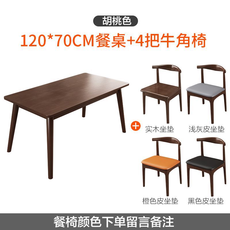 단단한 나무 식탁 및 의자 조합 가구 작은 아파트 노르딕 호두 색상 현대 간단한 레스토랑 직사각형 식탁스토어 가기