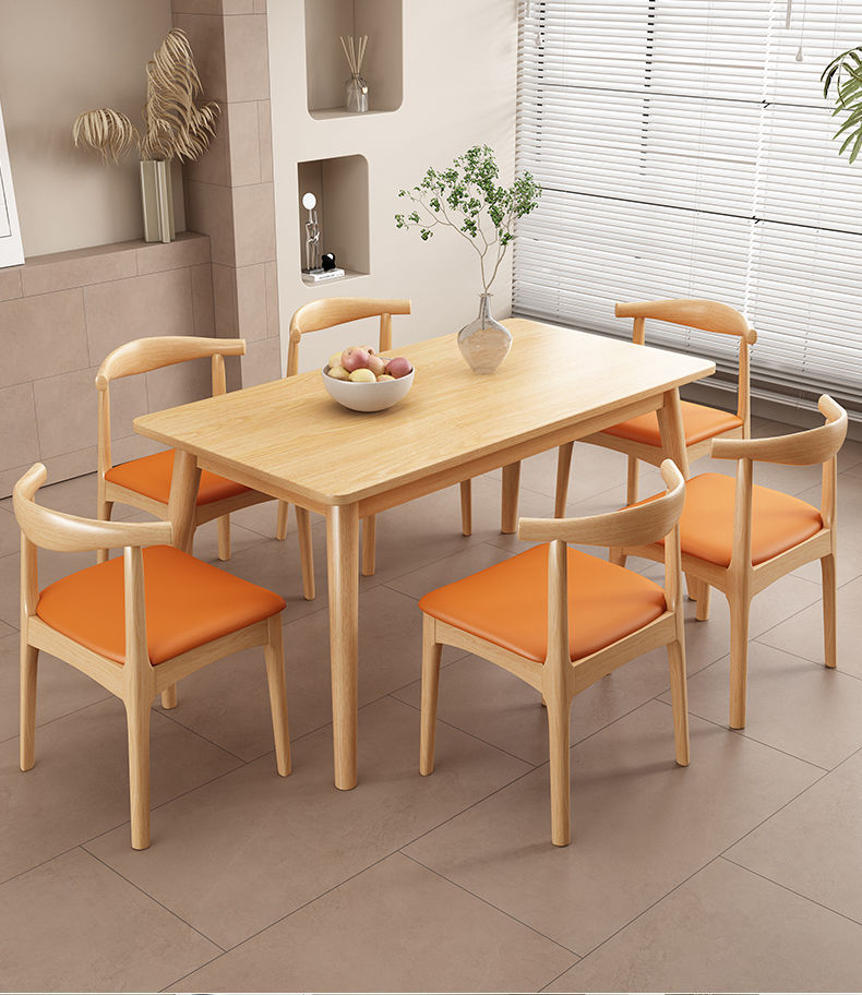 단단한 나무 식탁 및 의자 조합 가구 작은 아파트 노르딕 호두 색상 현대 간단한 레스토랑 직사각형 식탁