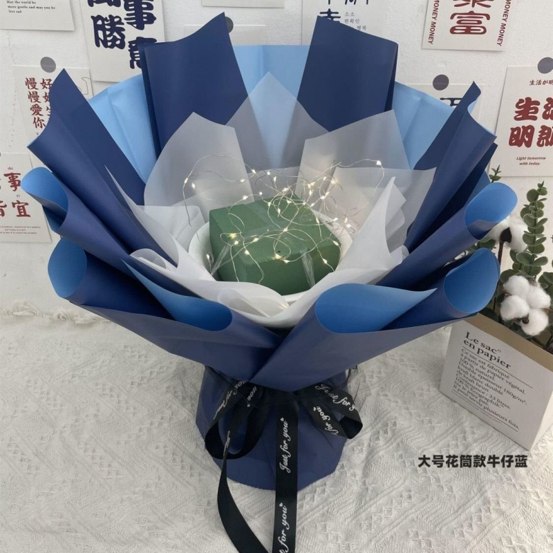 • 대형 꽃관 스타일 데님 블루 [대나무 스틱 축하 카드 테이프 스트링 조명]