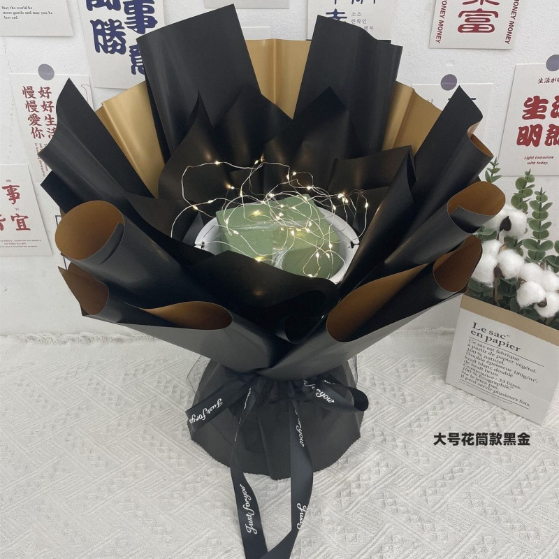 • 대형 꽃관 스타일 블랙 골드 [대나무 스틱 축하 카드 테이프 스트링 조명]