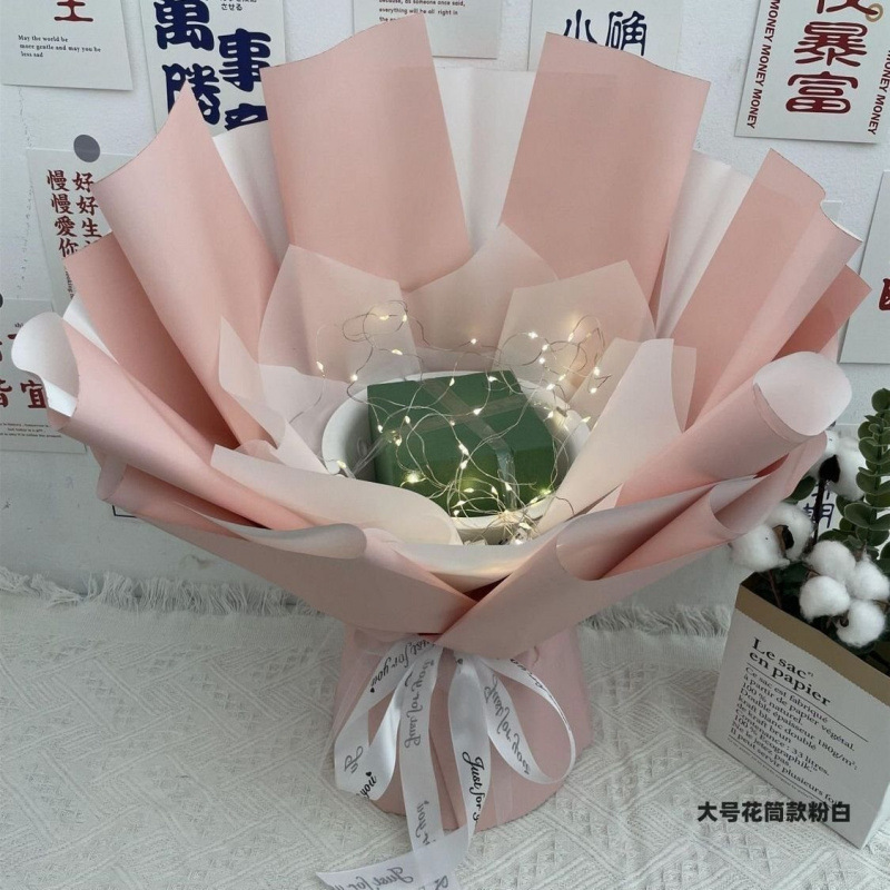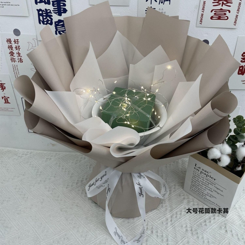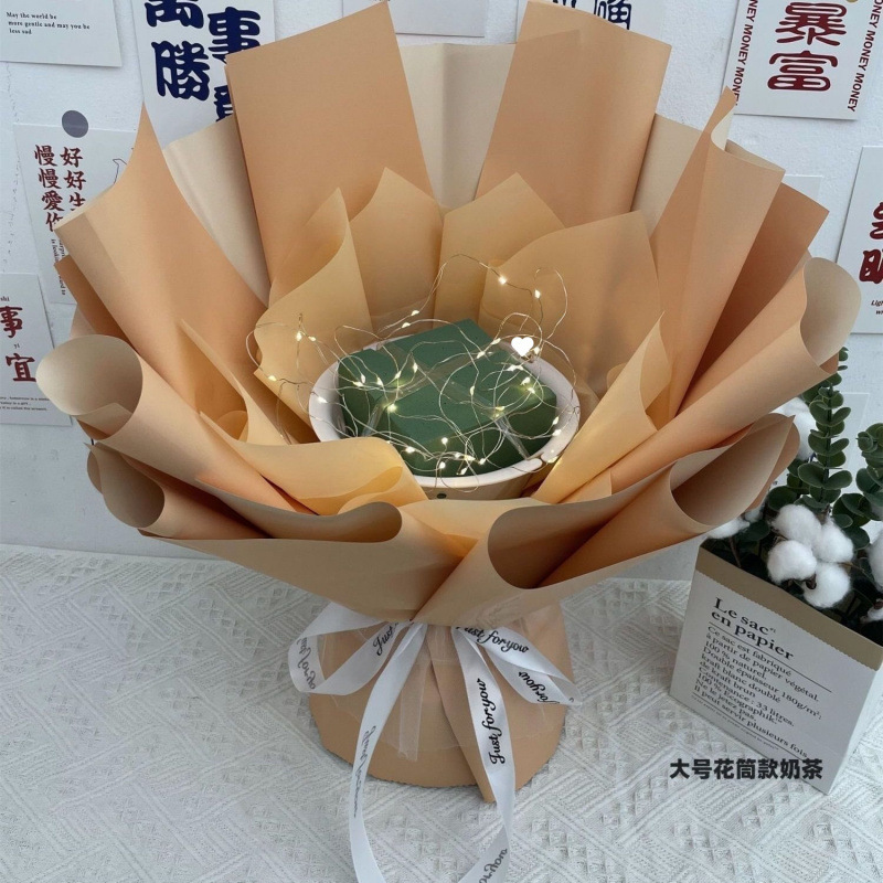 • 대형 꽃관 스타일 밀크 커피 [대나무 스틱 축하 카드 테이프 스트링 조명]