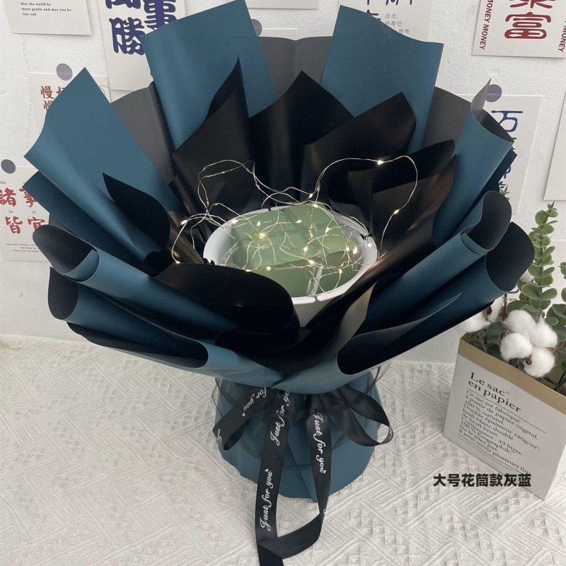 • 대형 꽃관 스타일 블루 앤 그레이 [대나무 스틱 축하 카드 테이프 스트링 조명]