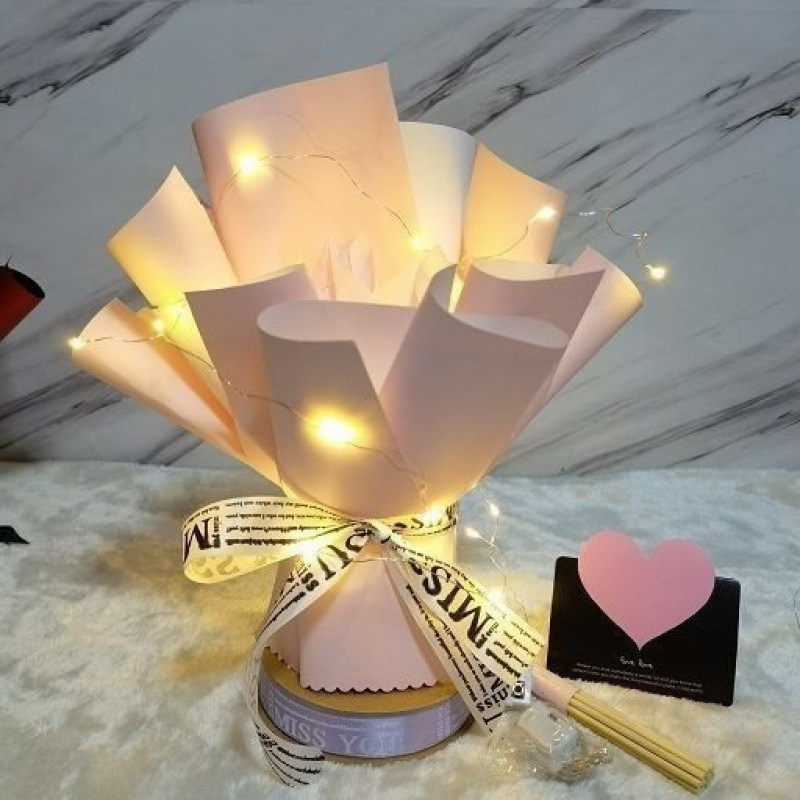 • 대형 꽃관 샴페인 [대나무 스틱 축하 카드 테이프 스트링 조명]
