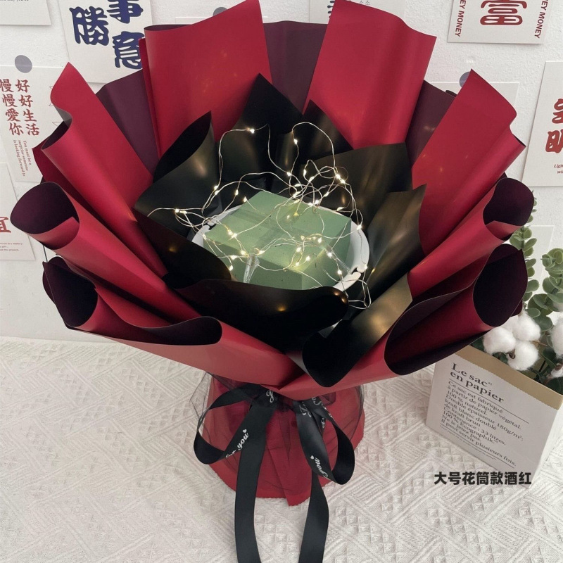 • 대형 꽃관 스타일 버건디 [대나무 스틱 축하 카드 테이프 스트링 조명]