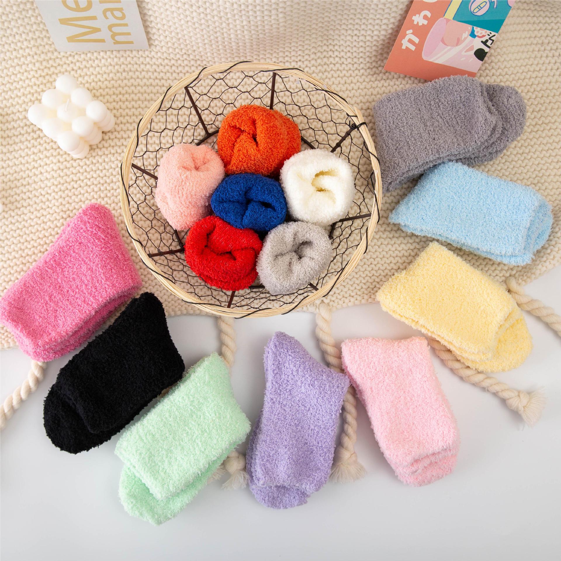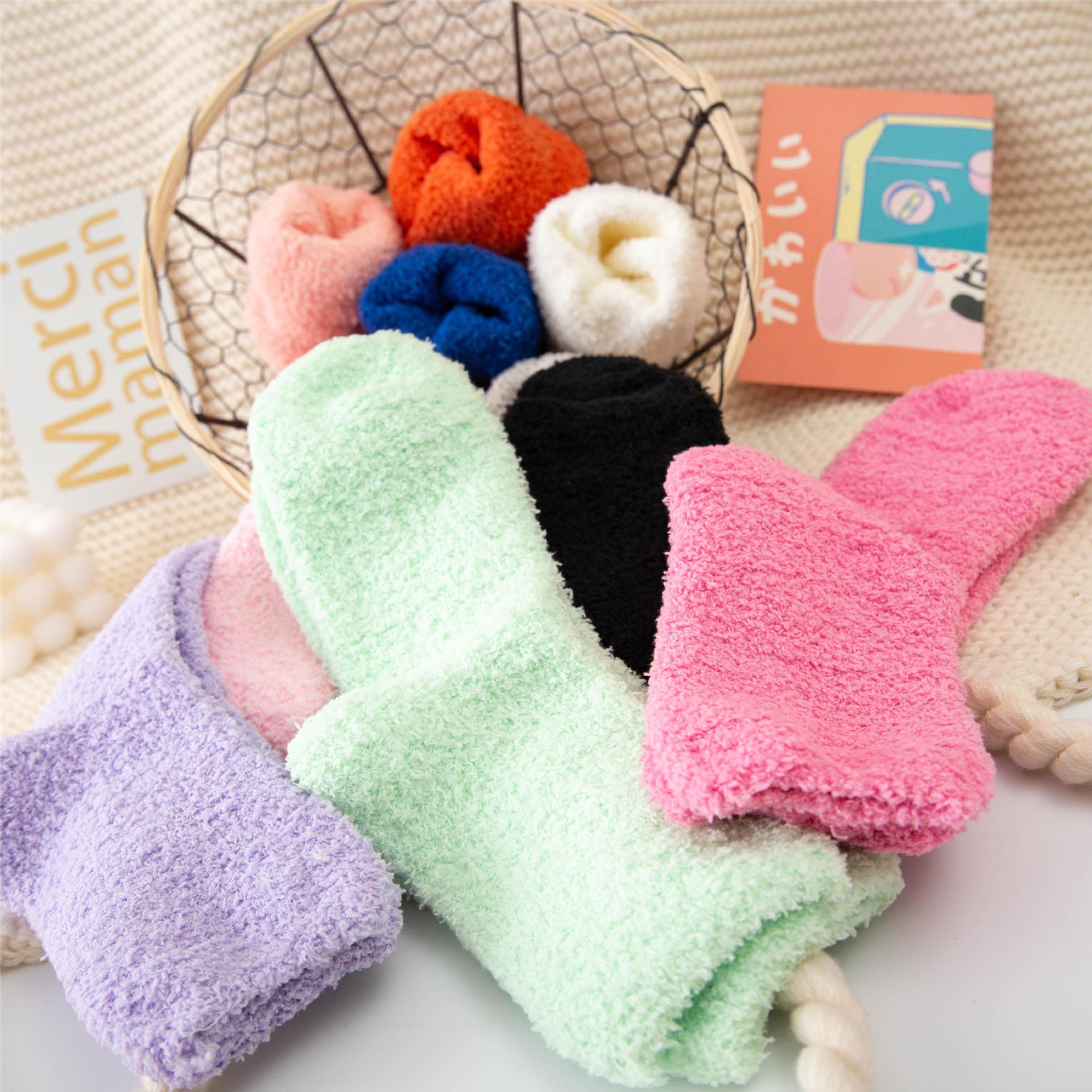 加厚珊瑚绒袜子 纯色款