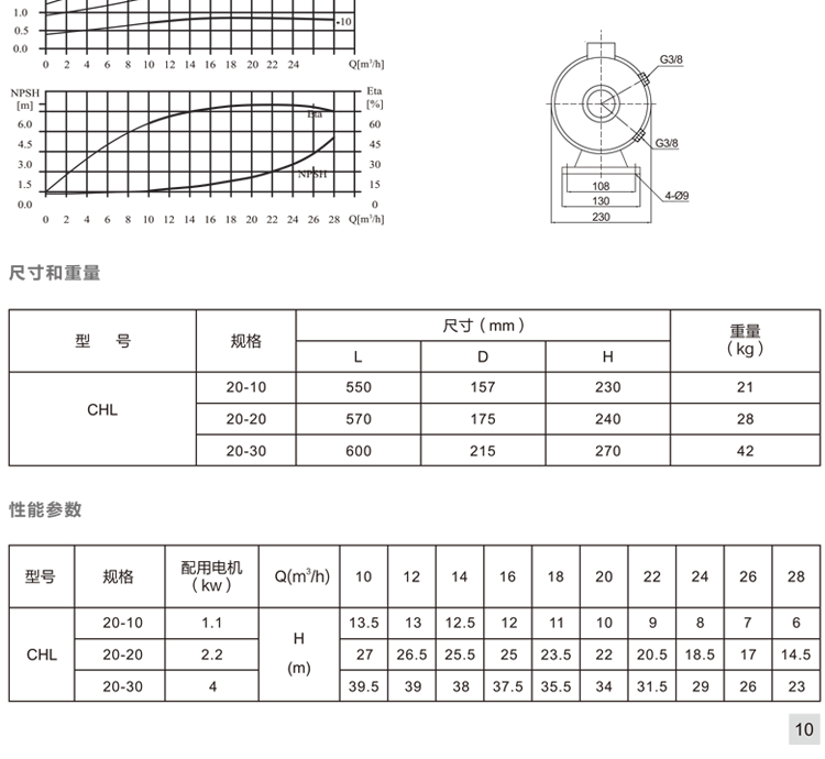 • <<CHL20-10/1.1KW/ 10m /220V>>