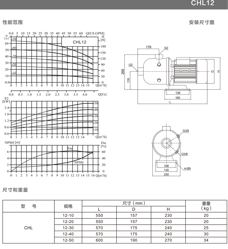 • <<CHL12-20/1.2KW/ 20m /220V>>