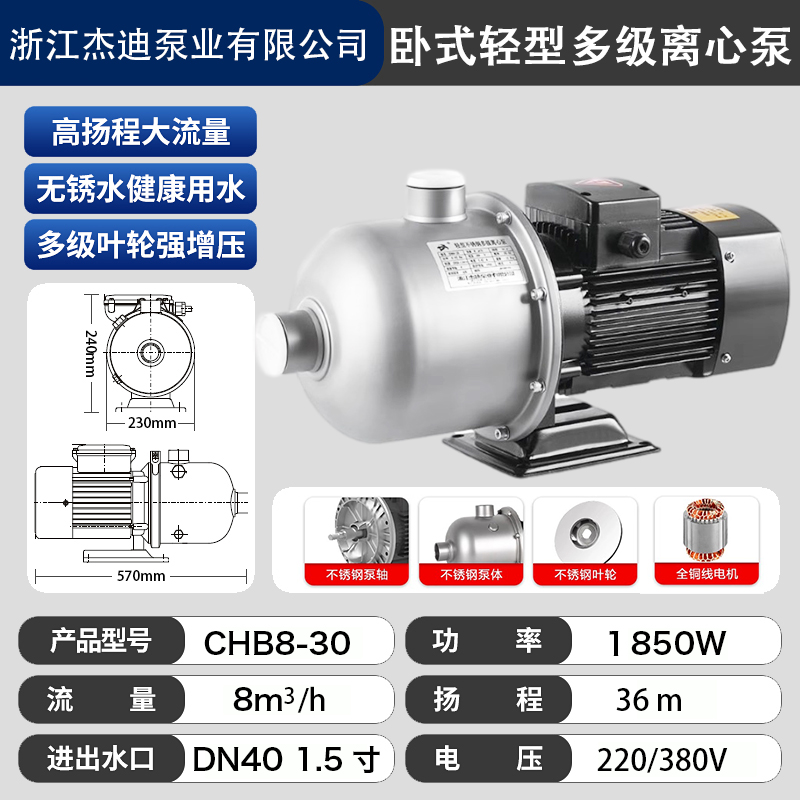 물 펌프 CHL2/4/8/12/16 수평 다단 원심 펌프 304 스테인레스 스틸 순환 부스터 펌프 380v스토어 가기