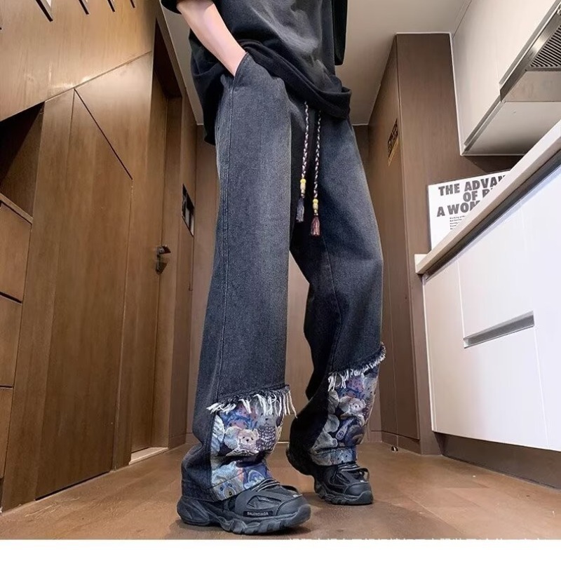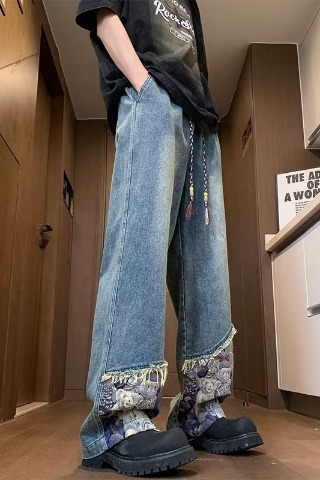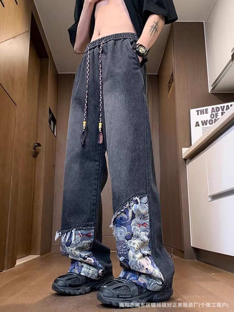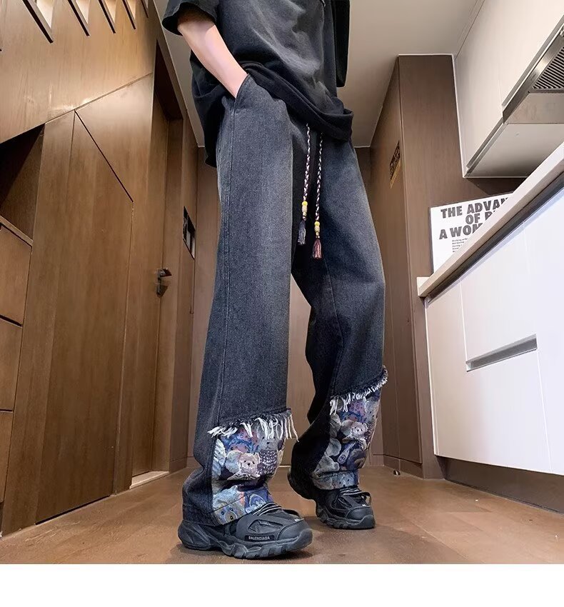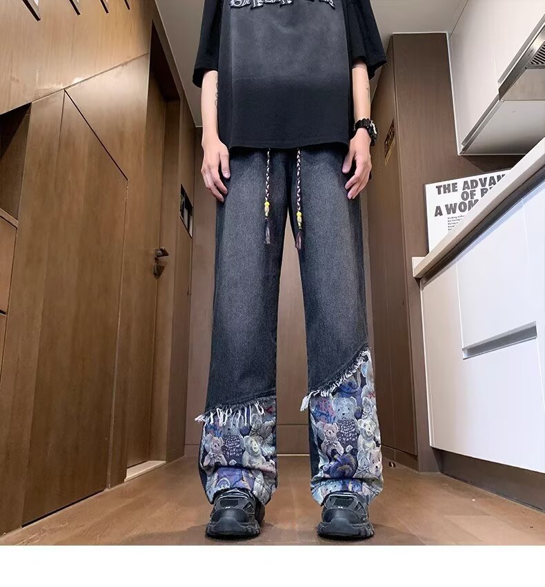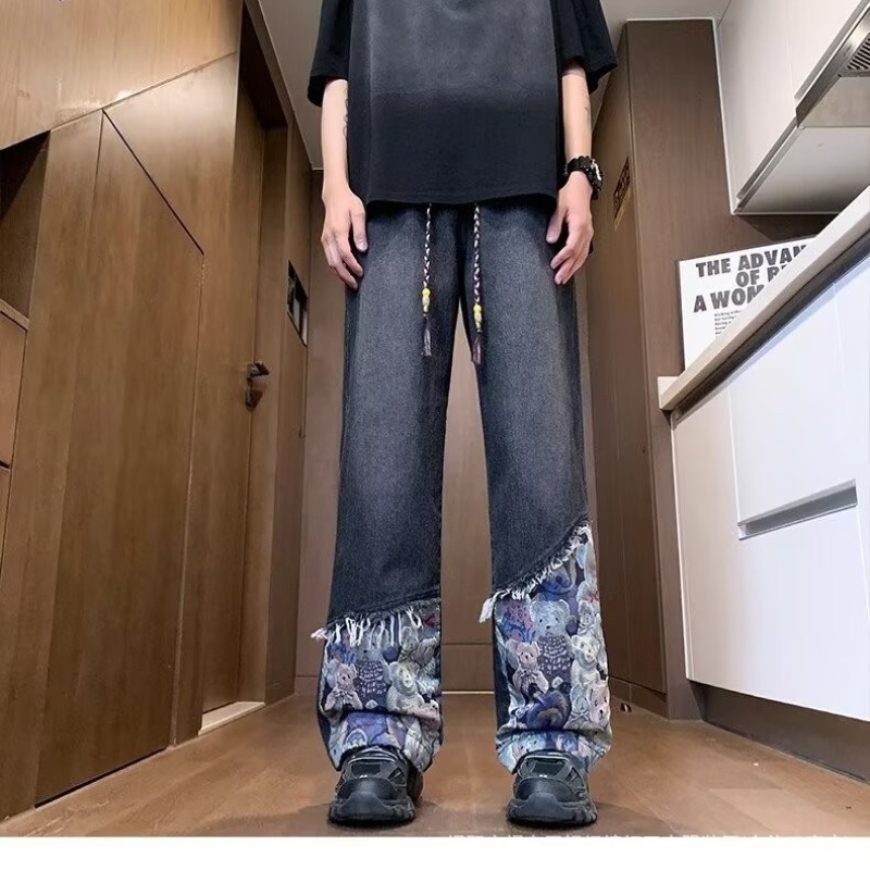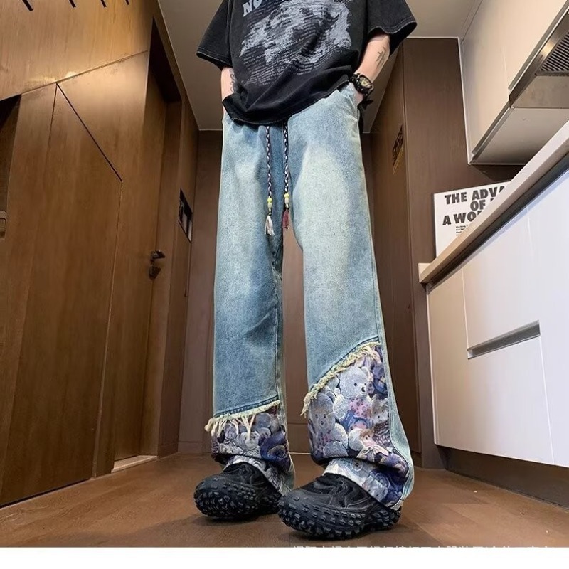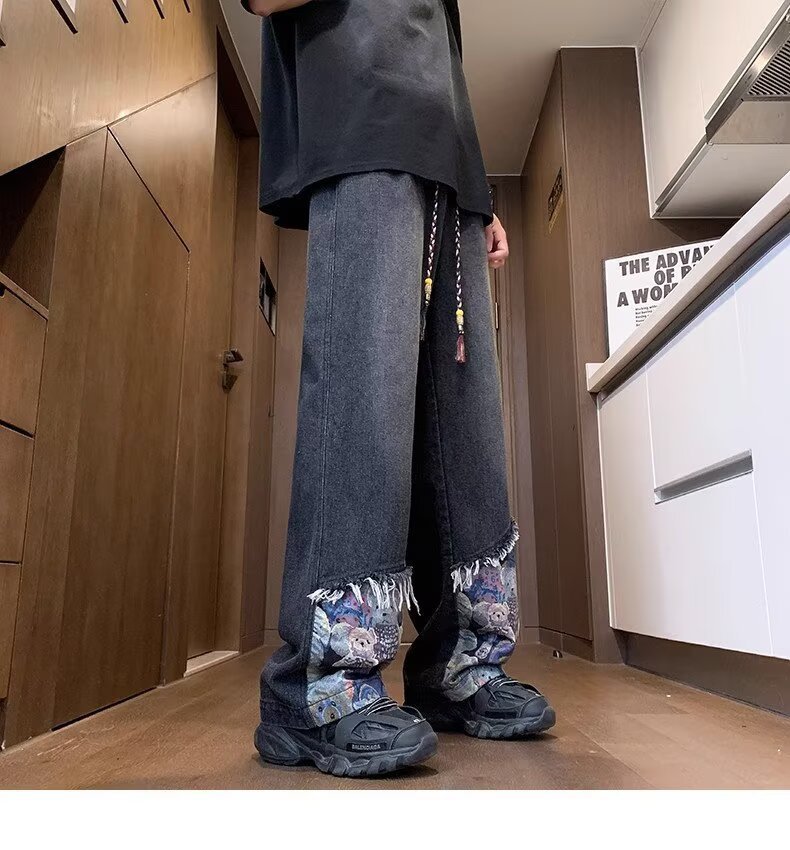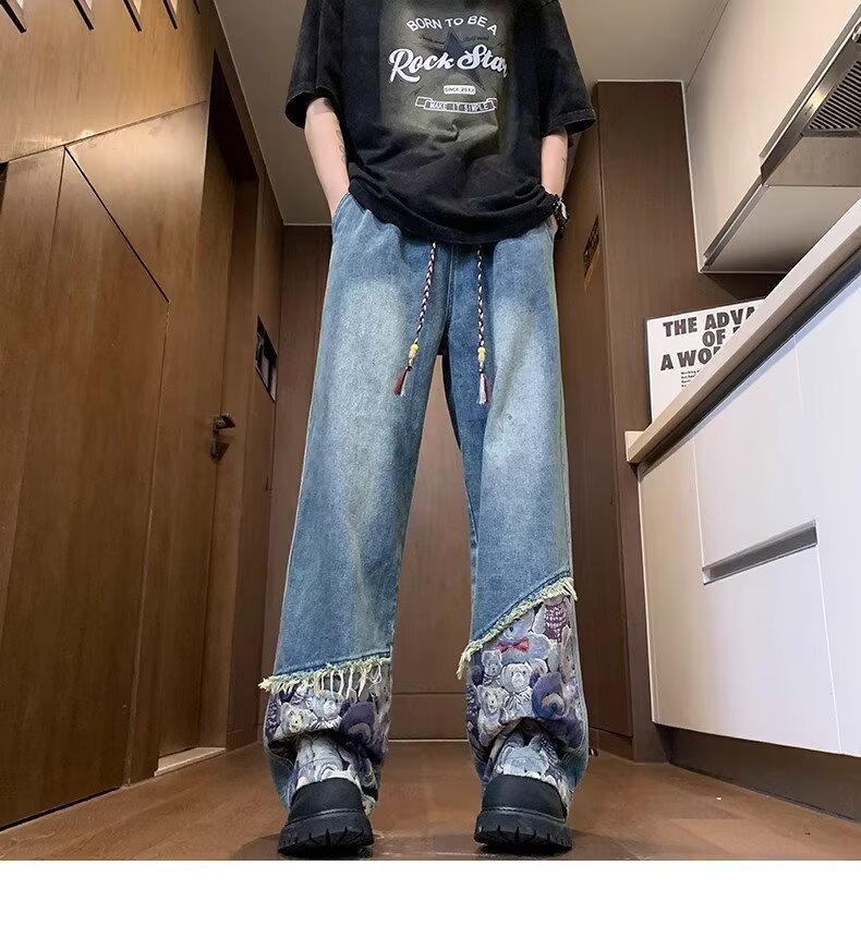 새로운 중국 스타일 곰 바느질 청바지 남성 가을 유행 브랜드 강아지 잘 생긴 작업복 스트레이트 바지 미국 빈티지 캐주얼 바지스토어 가기