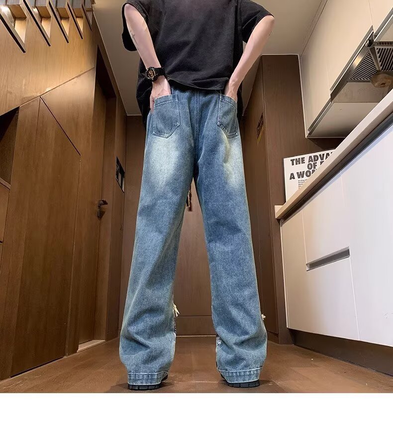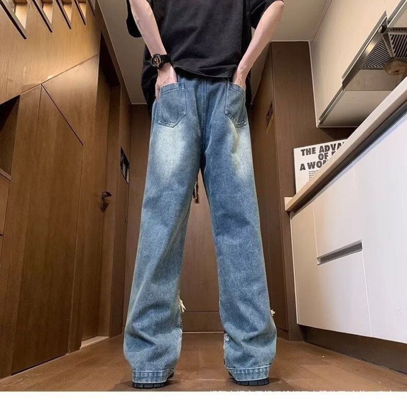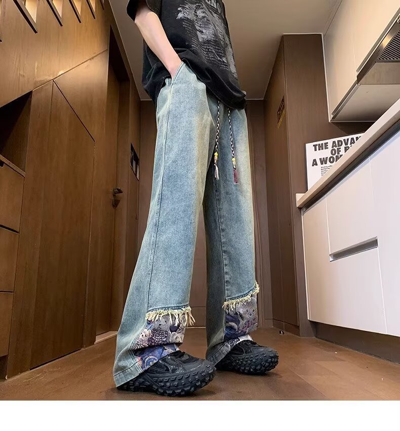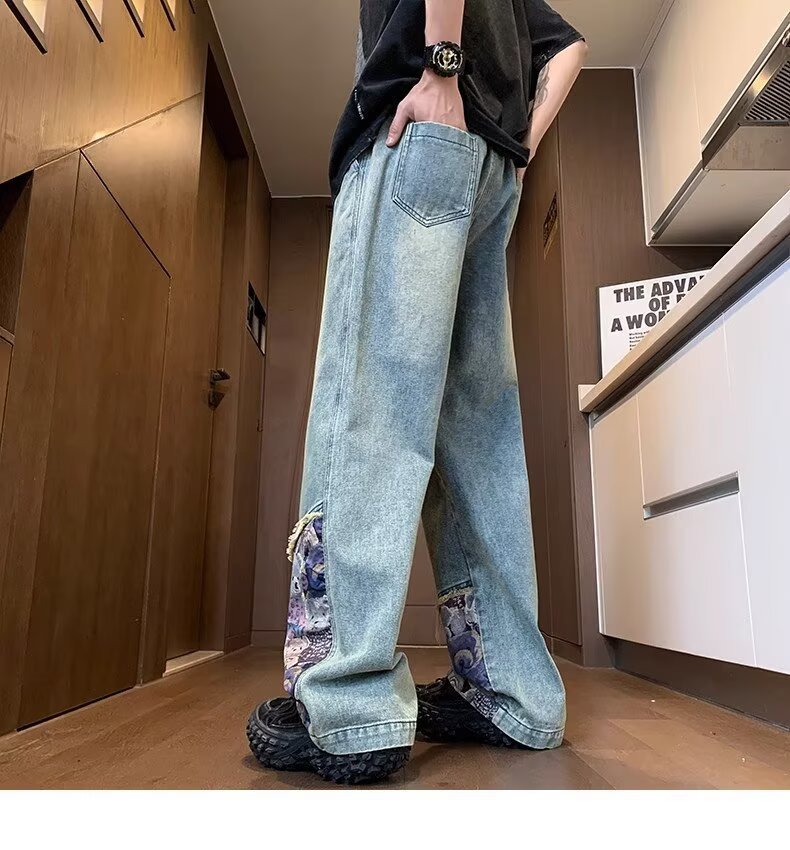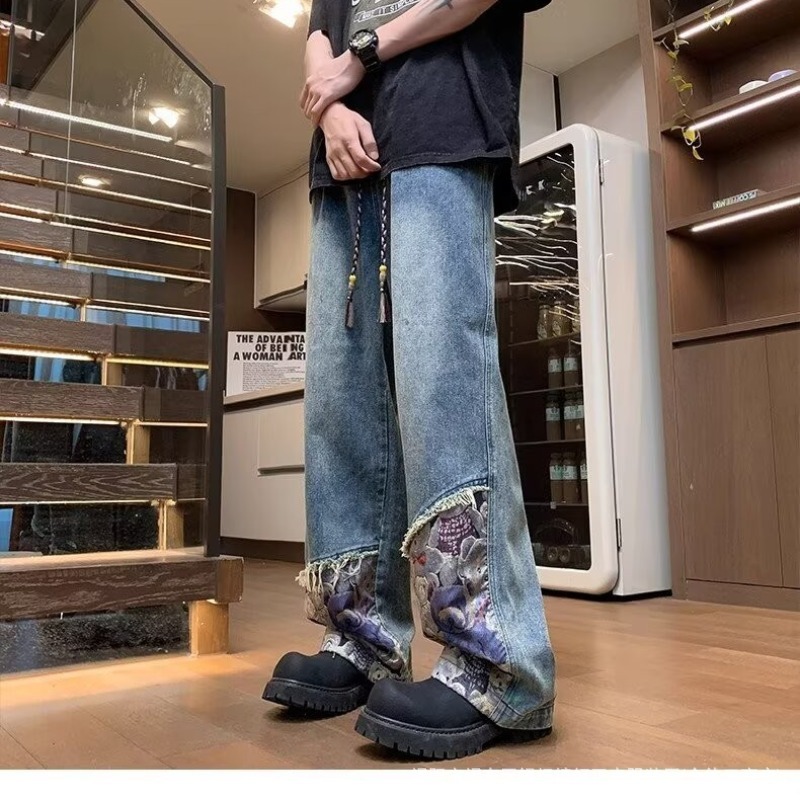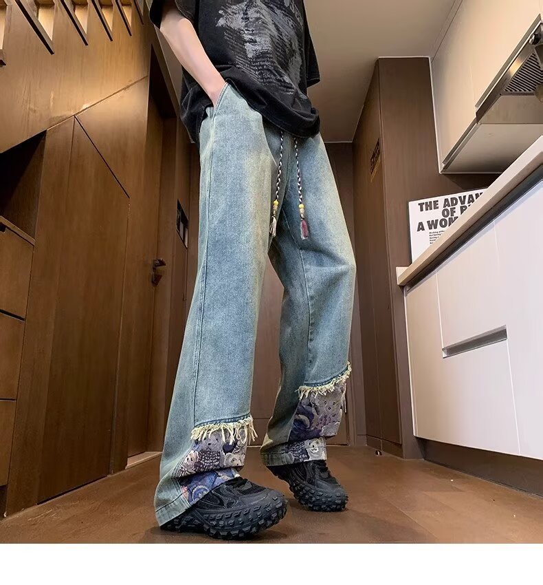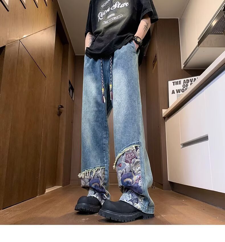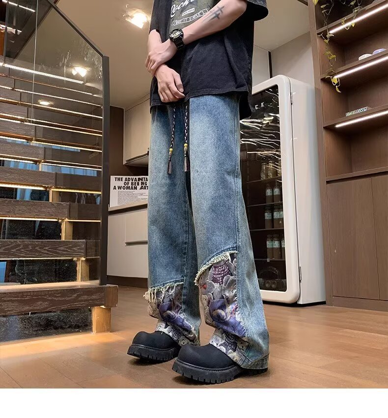 새로운 중국 스타일 곰 바느질 청바지 남성 가을 유행 브랜드 강아지 잘 생긴 작업복 스트레이트 바지 미국 빈티지 캐주얼 바지스토어 가기