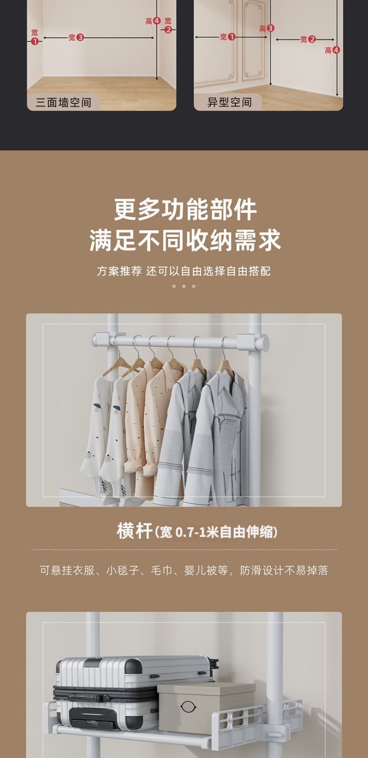 • 【3.1000m 화이트】텔레스코픽 수직 폴 + 날개 + 의류 포크