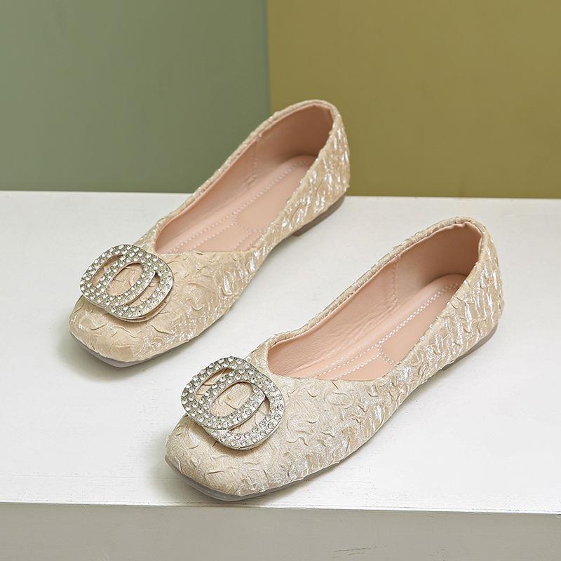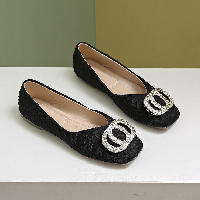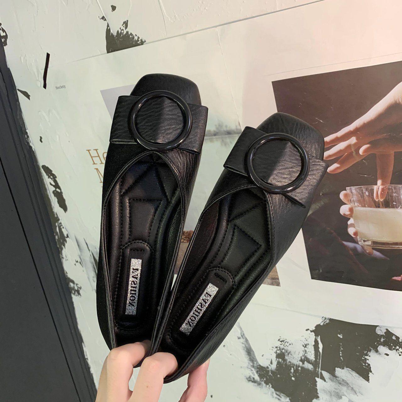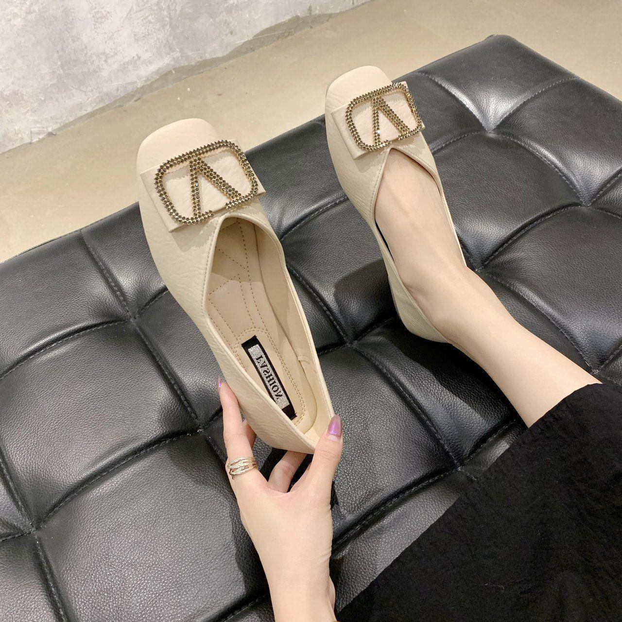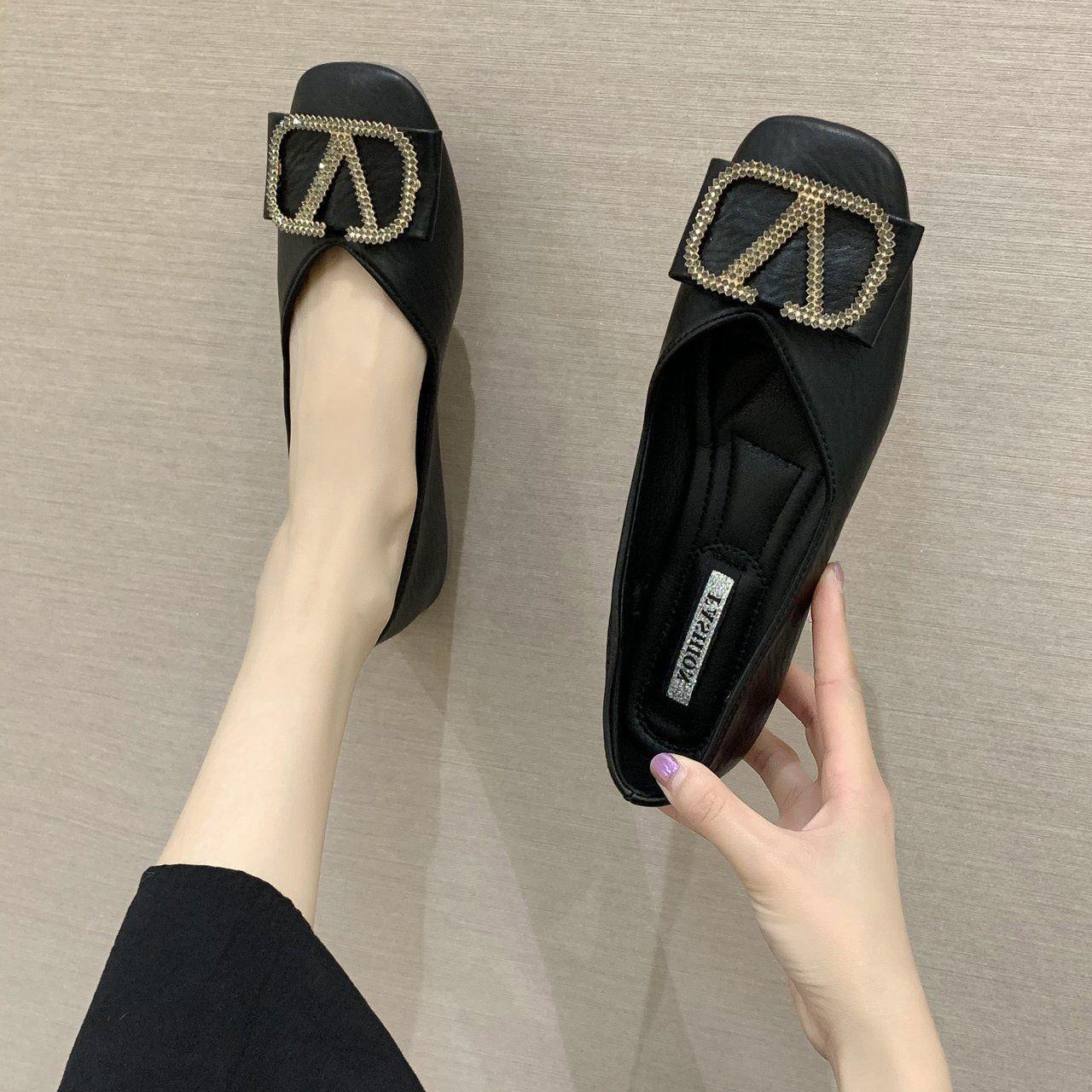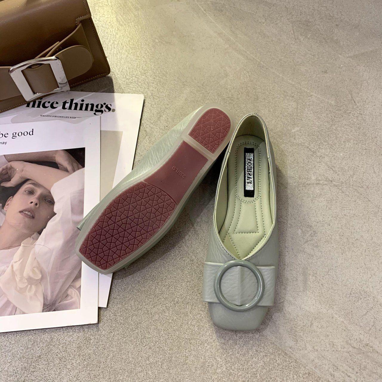 싱글 신발 여성 2025 새로운 한국 스타일 쇠고기 텐든 봄과 여름 얕은 입 넓은 발 평평한 무당 신발 스퀘어 발가락 부드러운 바닥 콩 신발스토어 가기