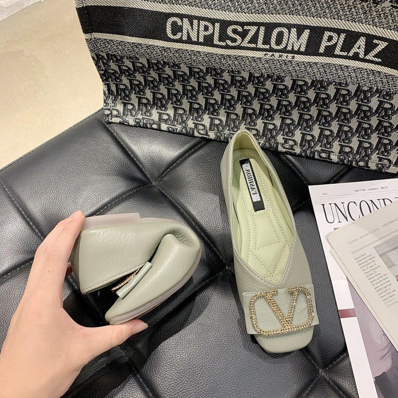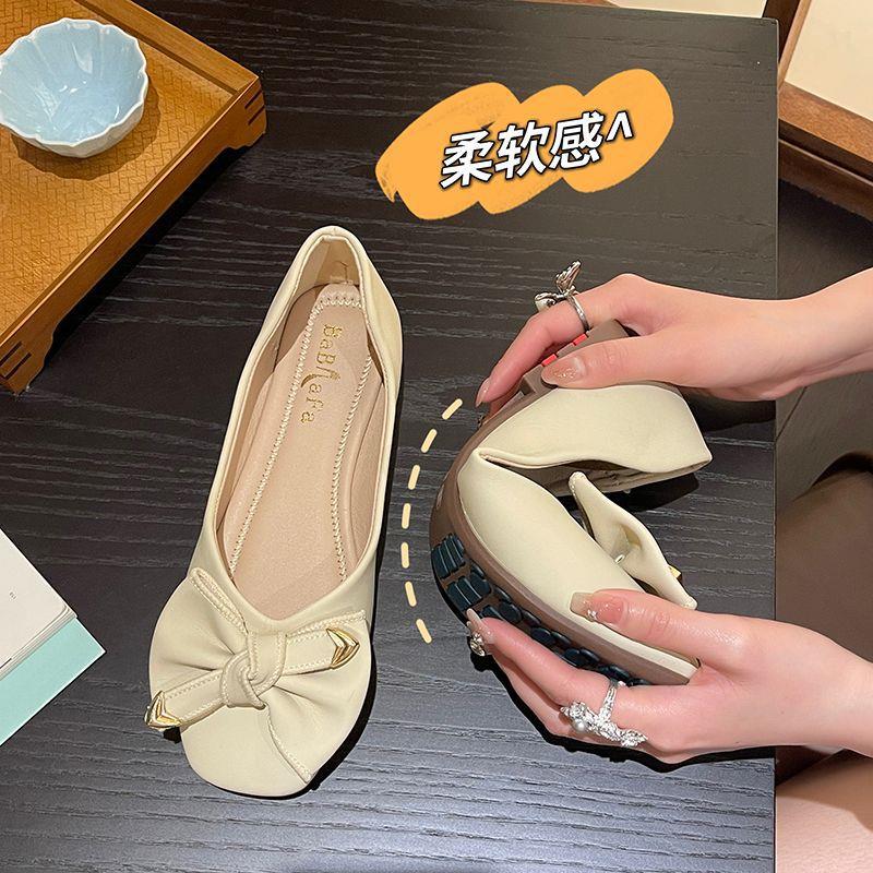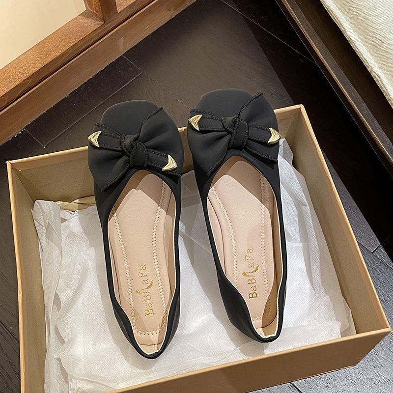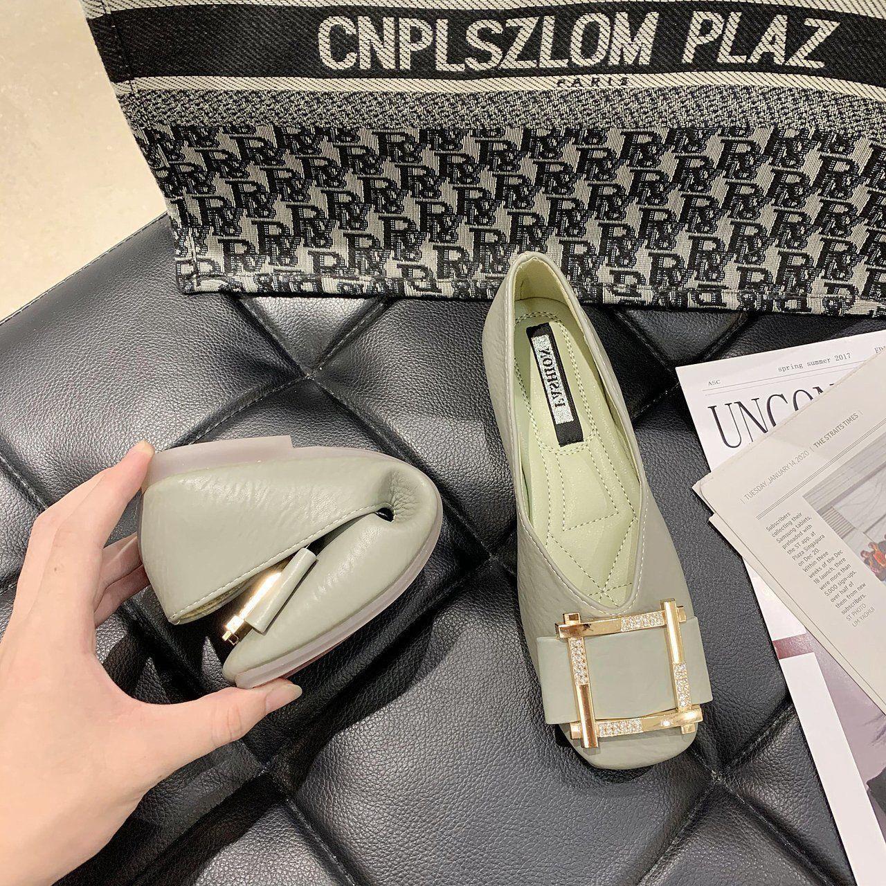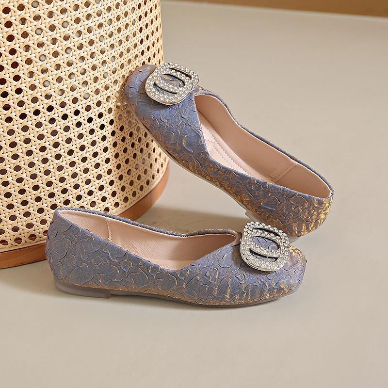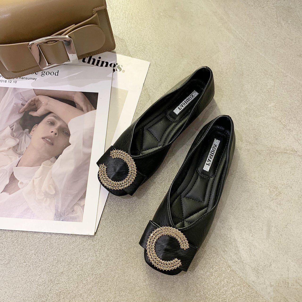싱글 신발 여성 2025 새로운 한국 스타일 쇠고기 텐든 봄과 여름 얕은 입 넓은 발 평평한 무당 신발 스퀘어 발가락 부드러운 바닥 콩 신발스토어 가기