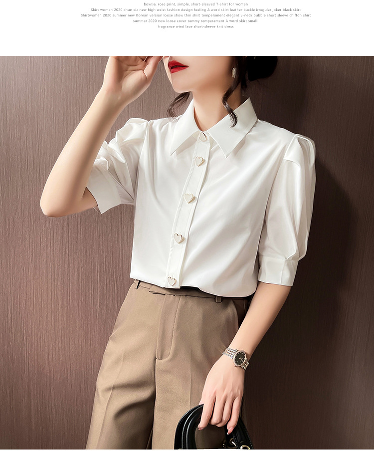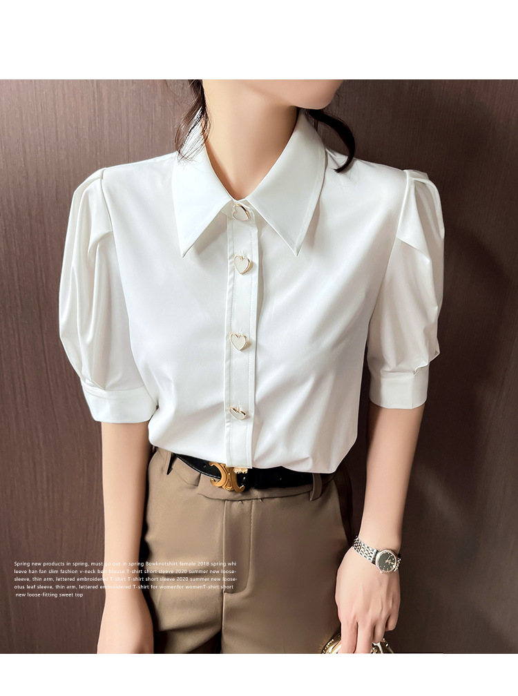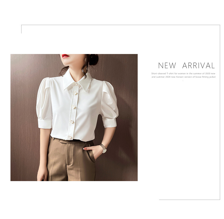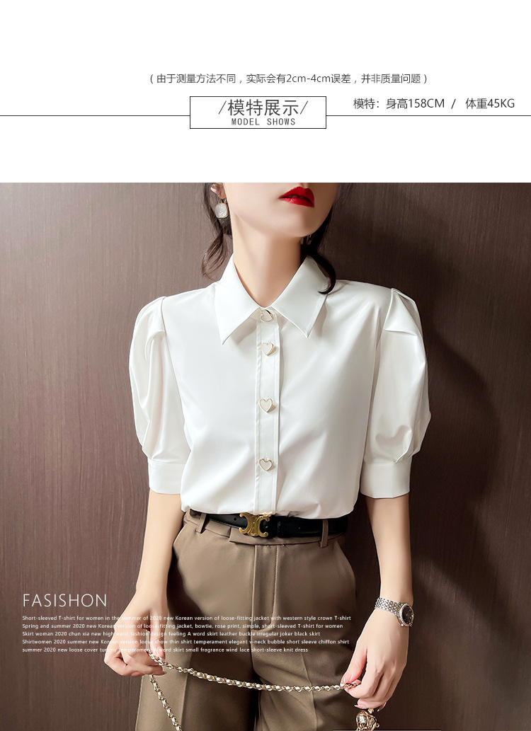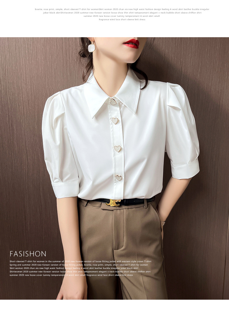 화이트 버블 슬리브 코튼 셔츠 여성용 짧은 소매 여름 새로운 달콤한 복고풍 탑 탄성 통기성 랜턴 슬리브 셔츠스토어 가기