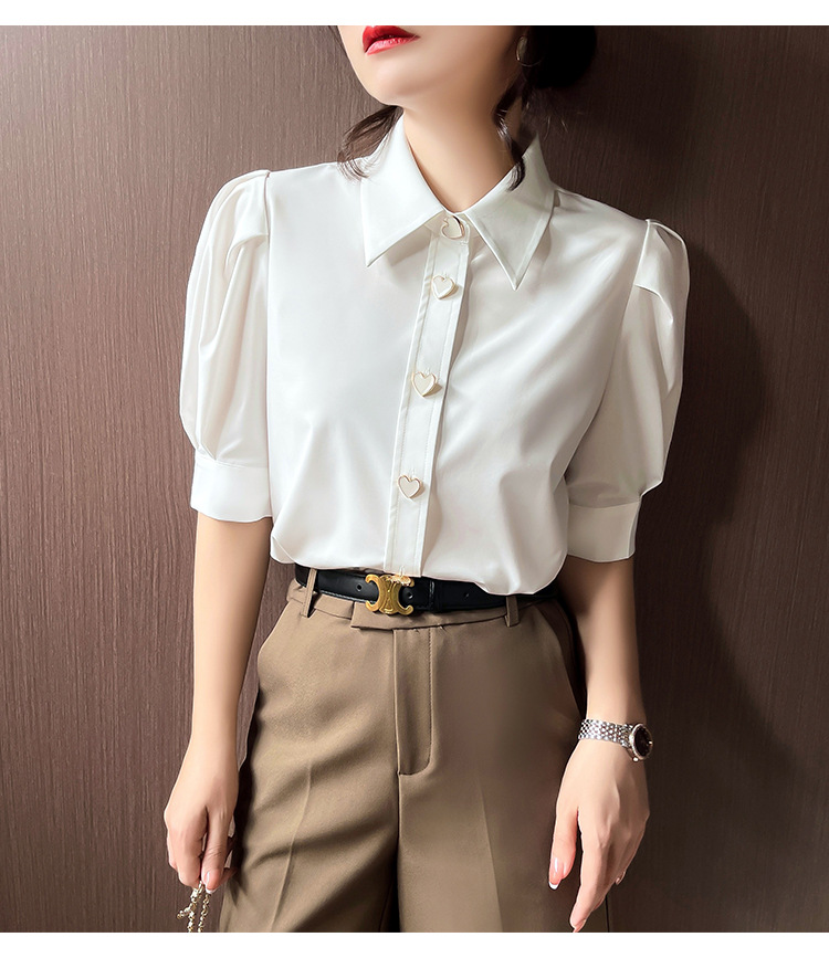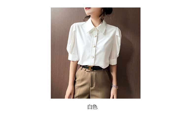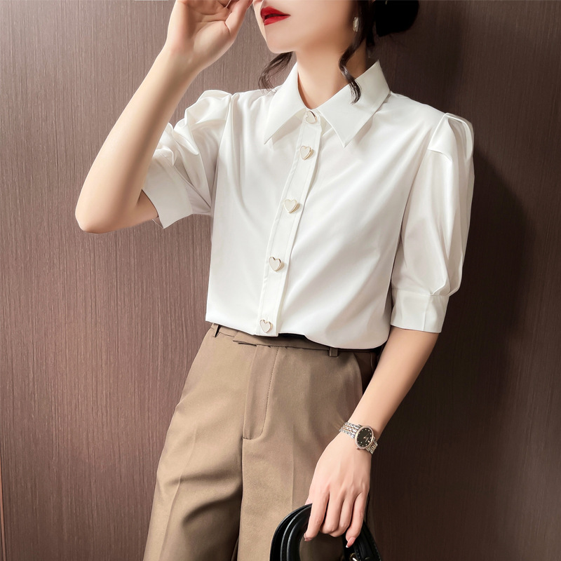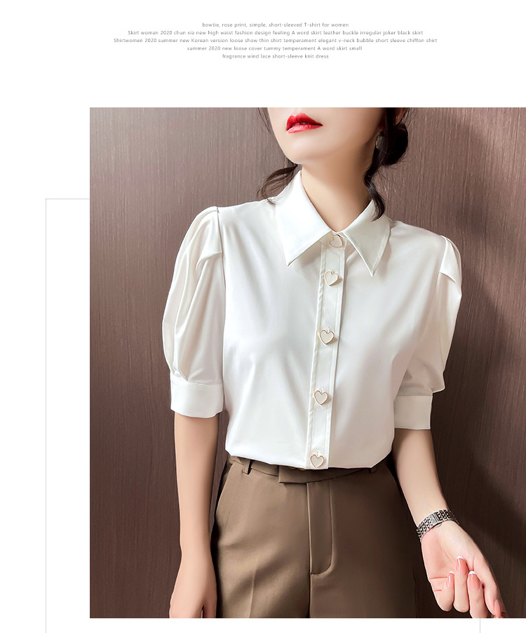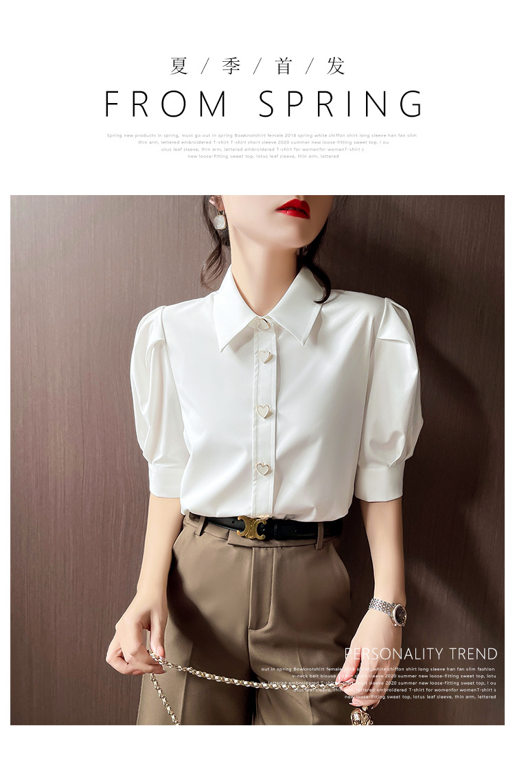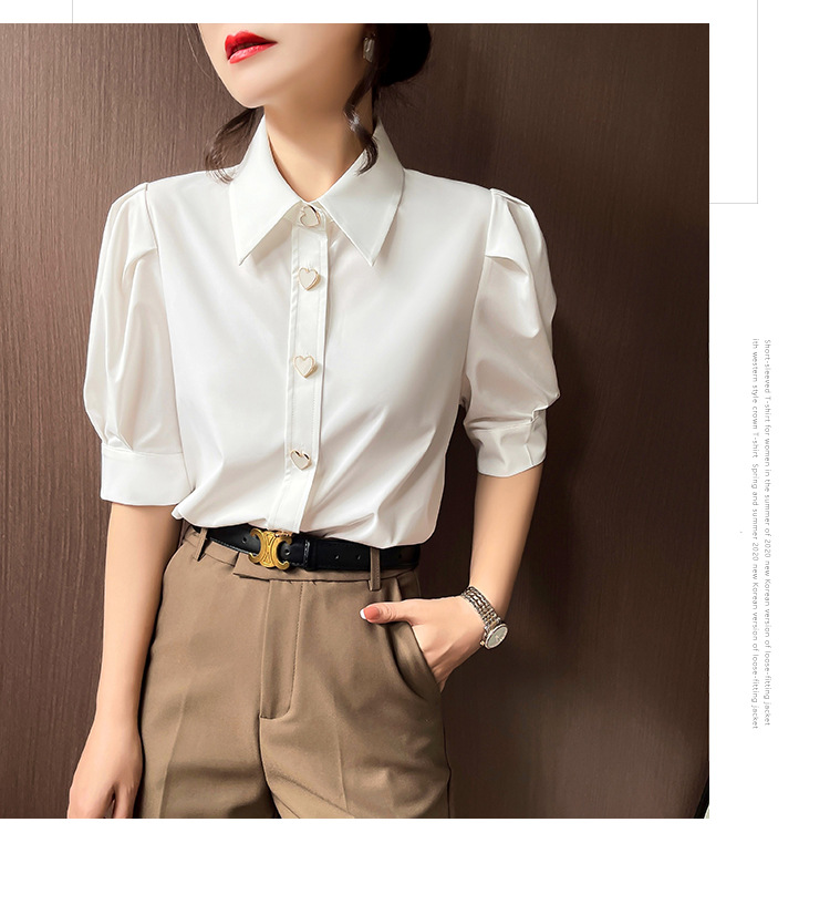 화이트 버블 슬리브 코튼 셔츠 여성용 짧은 소매 여름 새로운 달콤한 복고풍 탑 탄성 통기성 랜턴 슬리브 셔츠스토어 가기