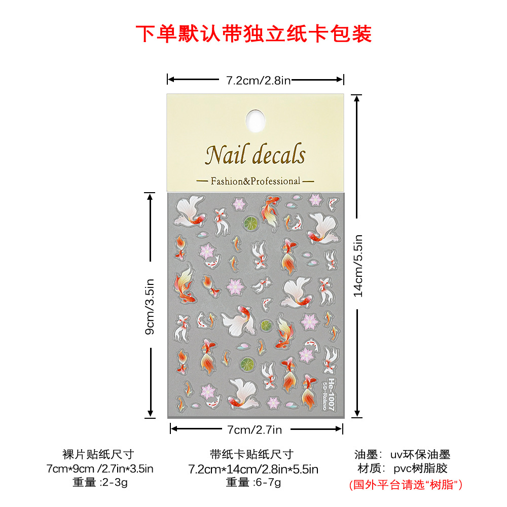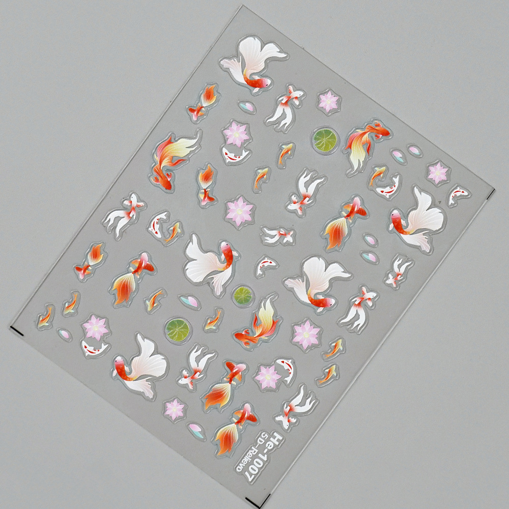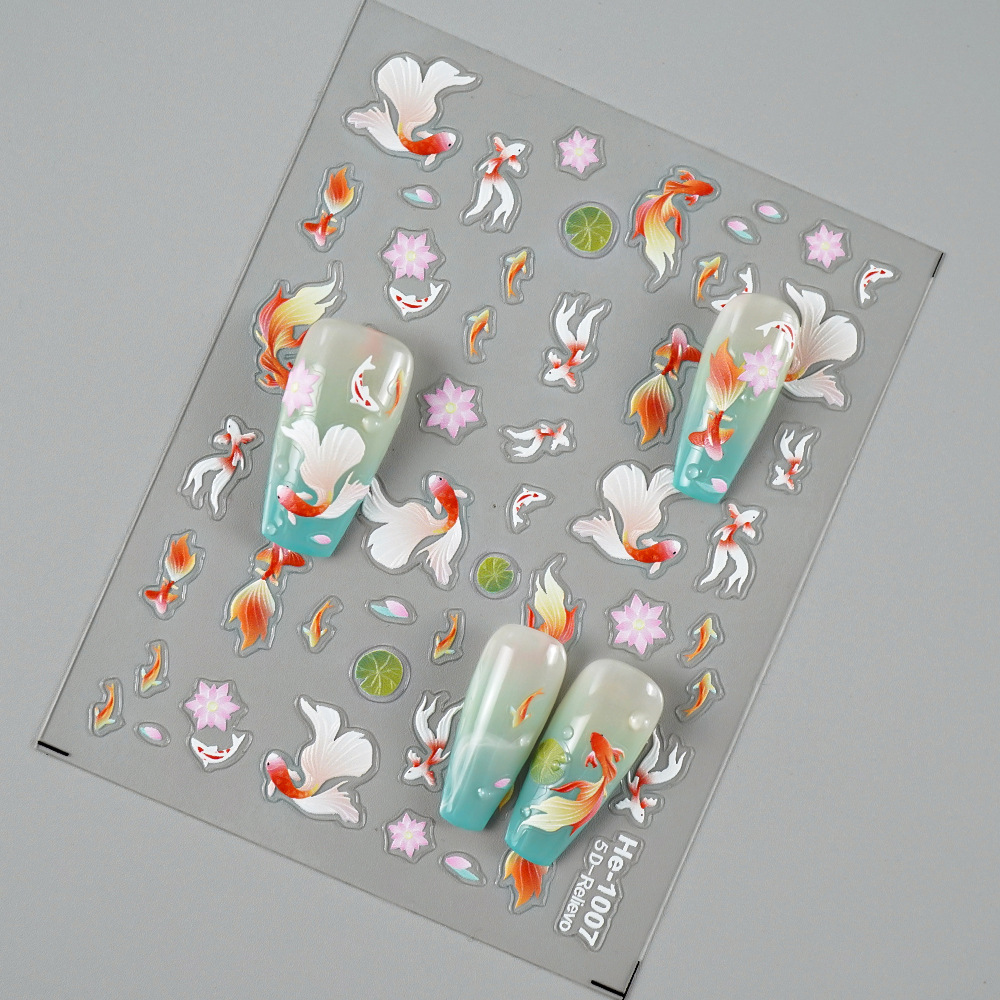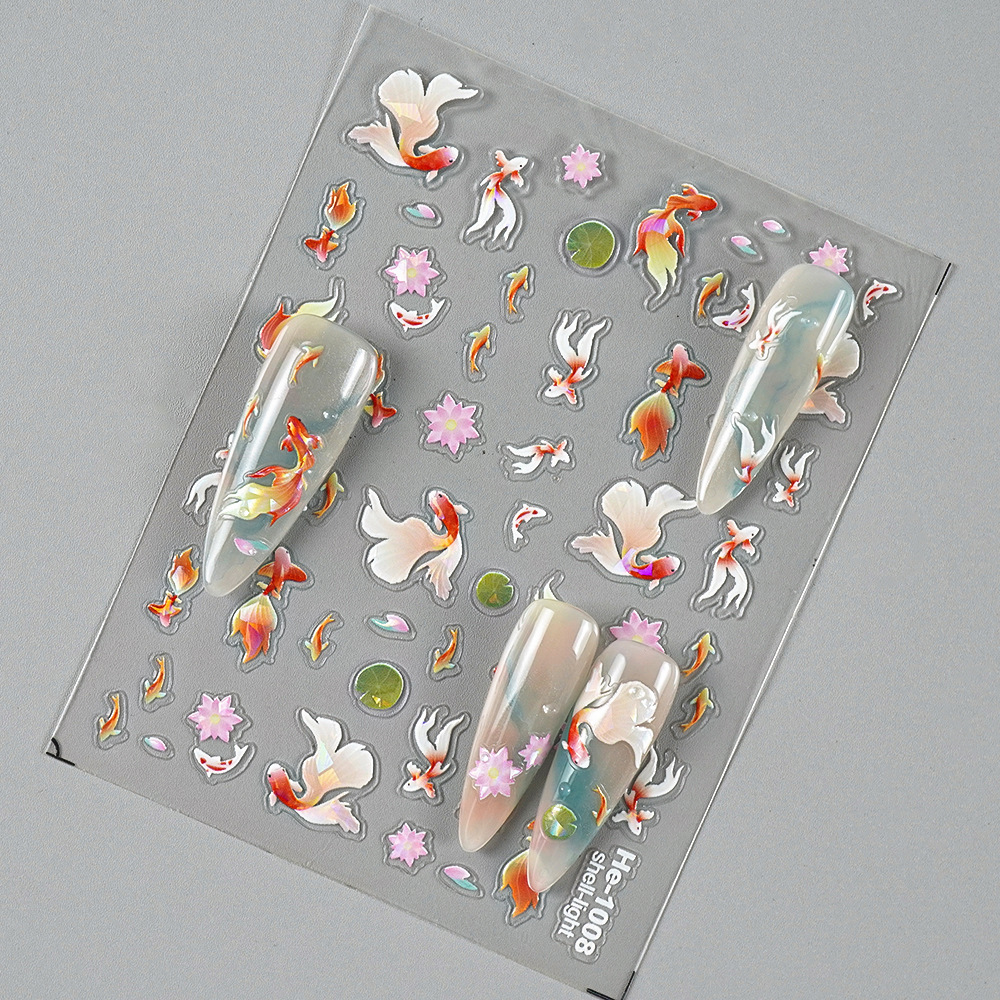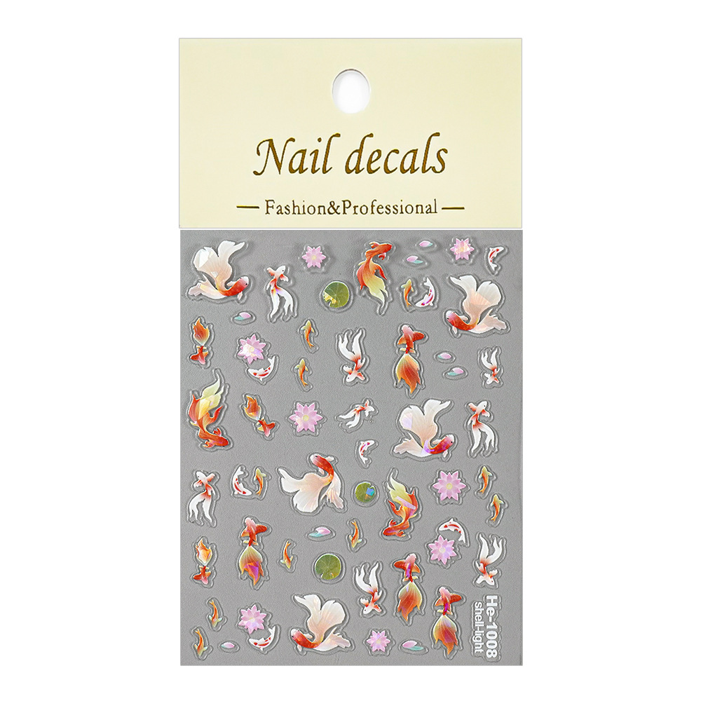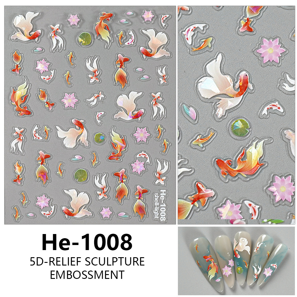Redanco 새로운 5D 양각 잉어 물고기 껍질 라이트 네일 스티커 3 차원 접착 네일 스티커 He-1008스토어 가기