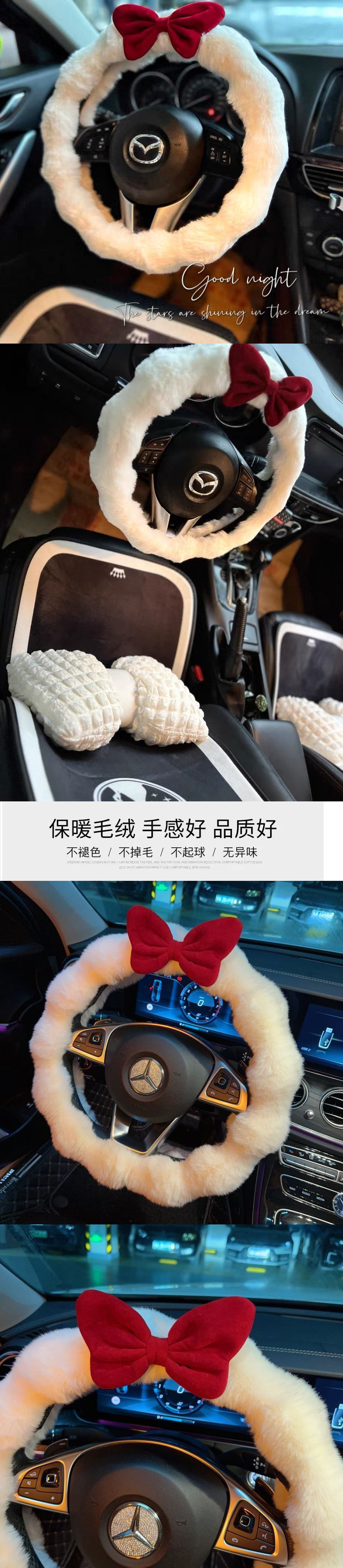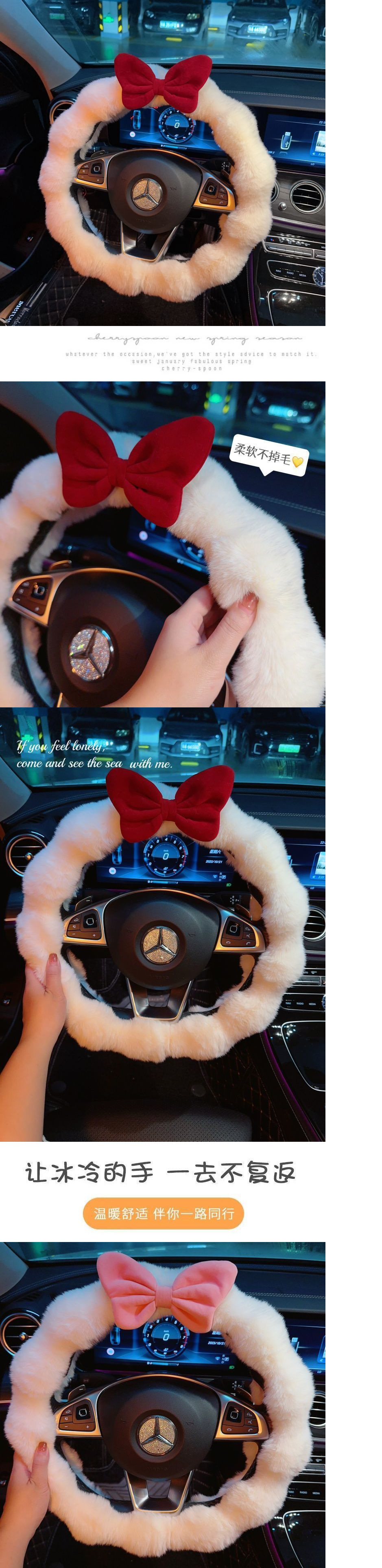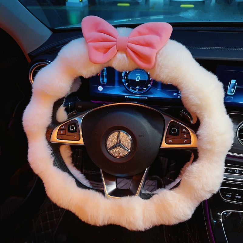 인터넷 연예인 고급 감각 여신 겨울 봉제 따뜻한 자동차 스티어링 휠 커버 비 슬립 핸드 피스 귀여운 여성 자동차 인테리어스토어 가기