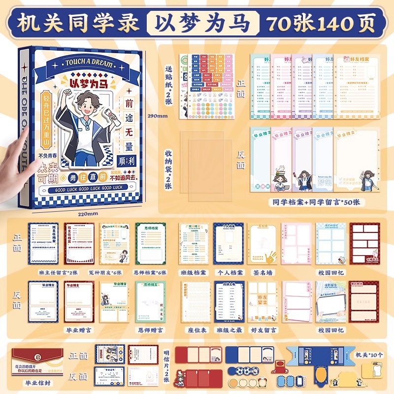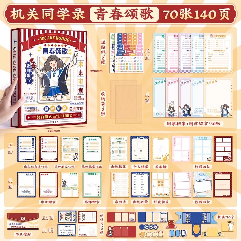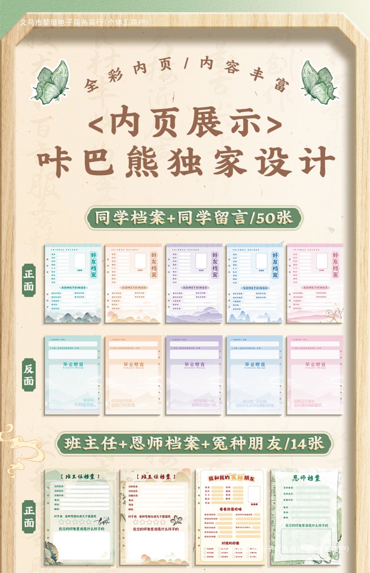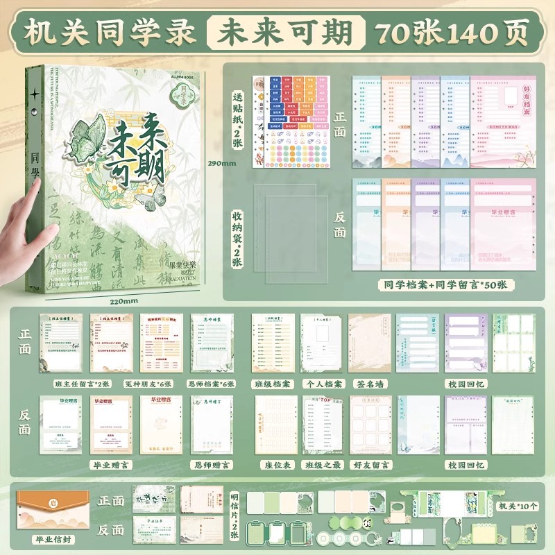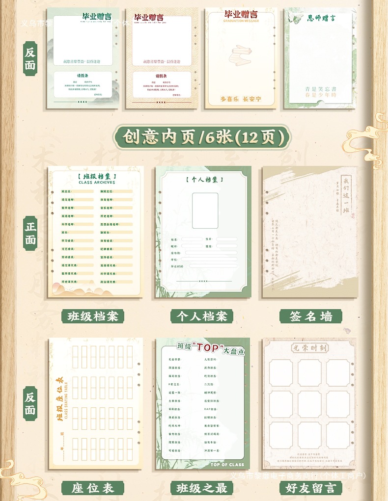 국가 조수 고대 스타일 동급생 기록 졸업 기념 도서 여학생 고양 가치 초등학교 학생 6 학년 2024 새로운 느슨한 잎 스타일