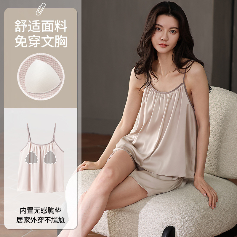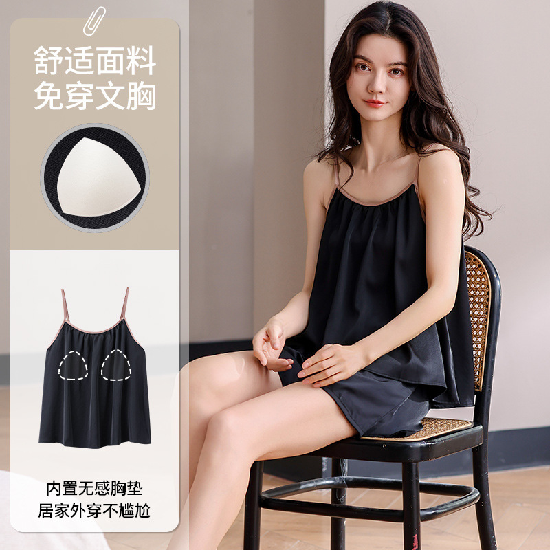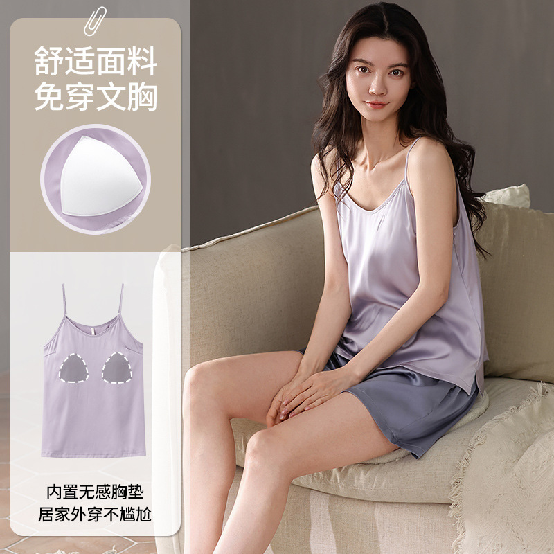 얼음과 눈 리본 가슴 패드 슬링 반바지 여성용 여름 어깨 Silky 작은 신선한 섹시한 조끼 순수한 소녀