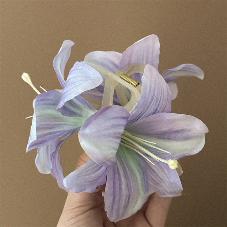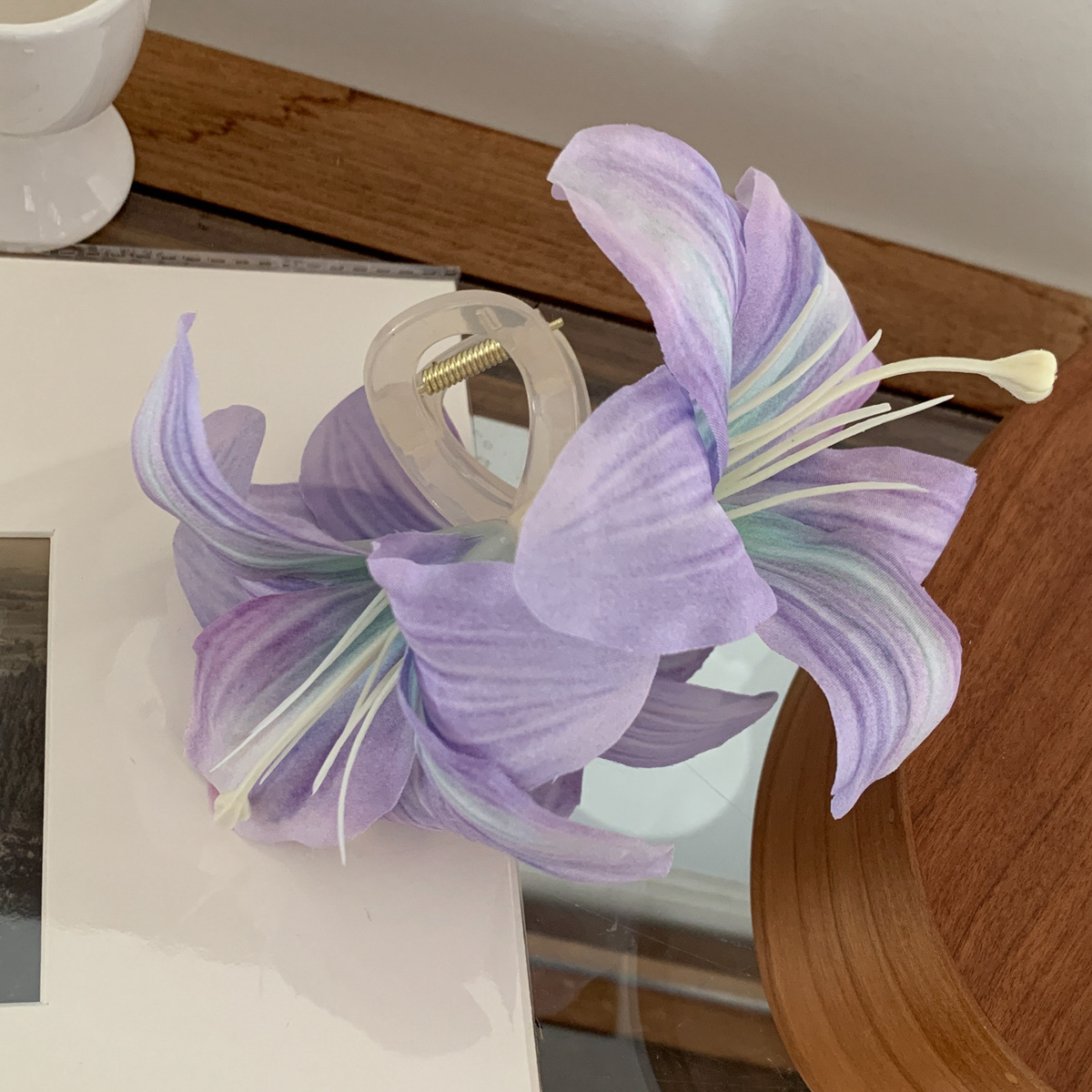 슈퍼 요정 흰색 꽃 시뮬레이션 잡아 클립 분위기 보라색 꽃 상어 클립 해변 사진 헤어핀 휴일 헤어 액세서리