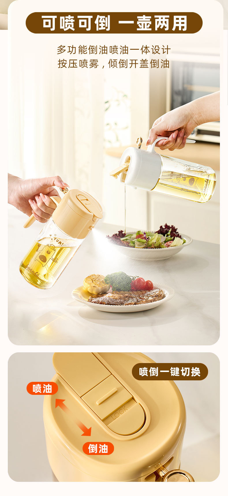 주방 스프레이 냄비 가정용 스프레이는 이중 목적 공기 프라이어를 붓습니다. 올리브 오일 요리 오일 바베큐 스프레이 분무