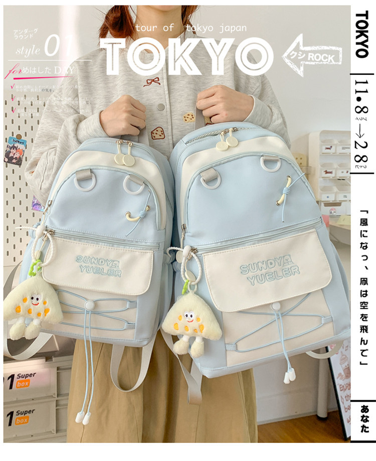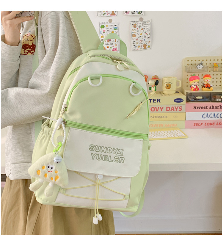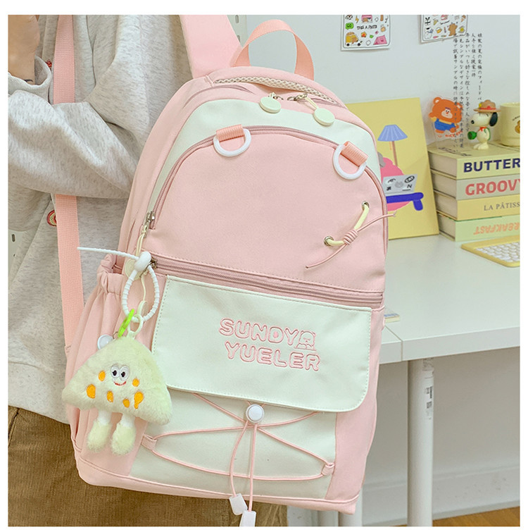 새로운 스타일 중학교 고등학교 학생 Schoolbag 신선한 달콤한 배낭 여성 대용량 대학생 캐주얼 컬러 대비 배낭스토어 가기