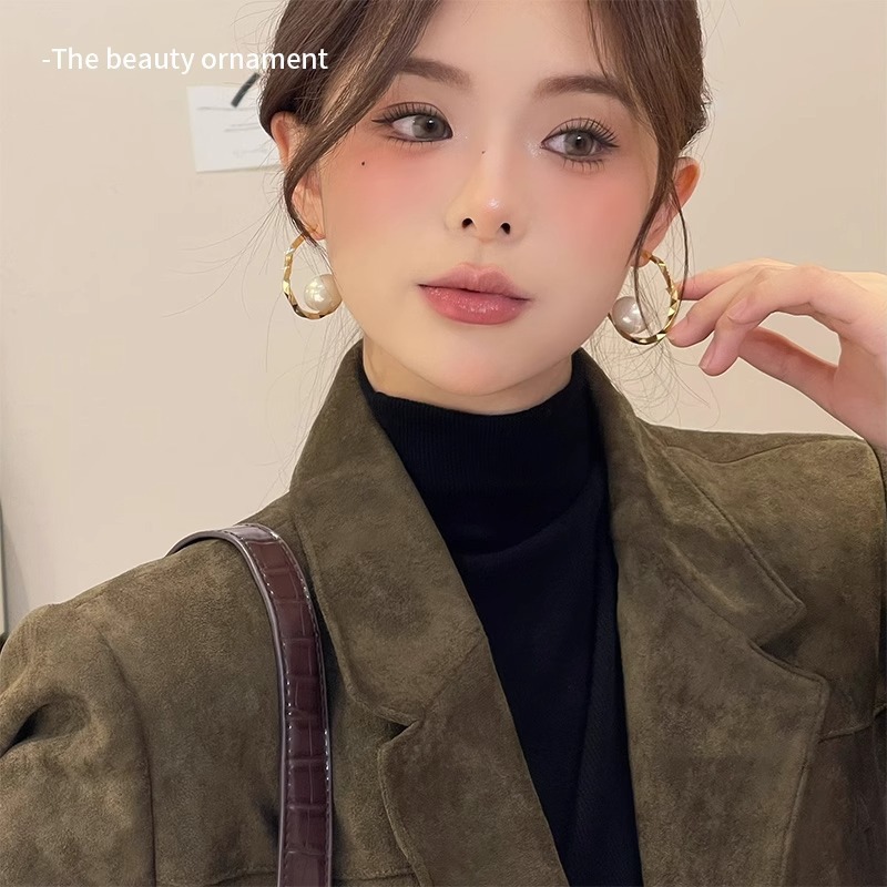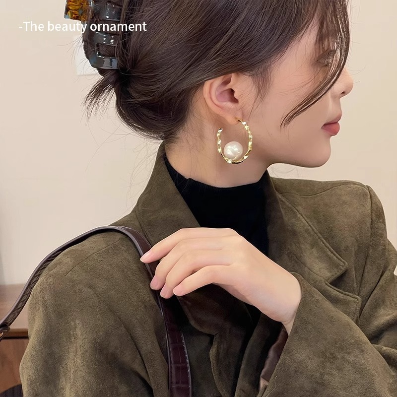 쿨 이어 링 올 매치 라이트 럭셔리 하이 엔드 귀걸이 골드 펄 귀걸이 실버 핀 크로스 보더 귀걸이 틈새 패션