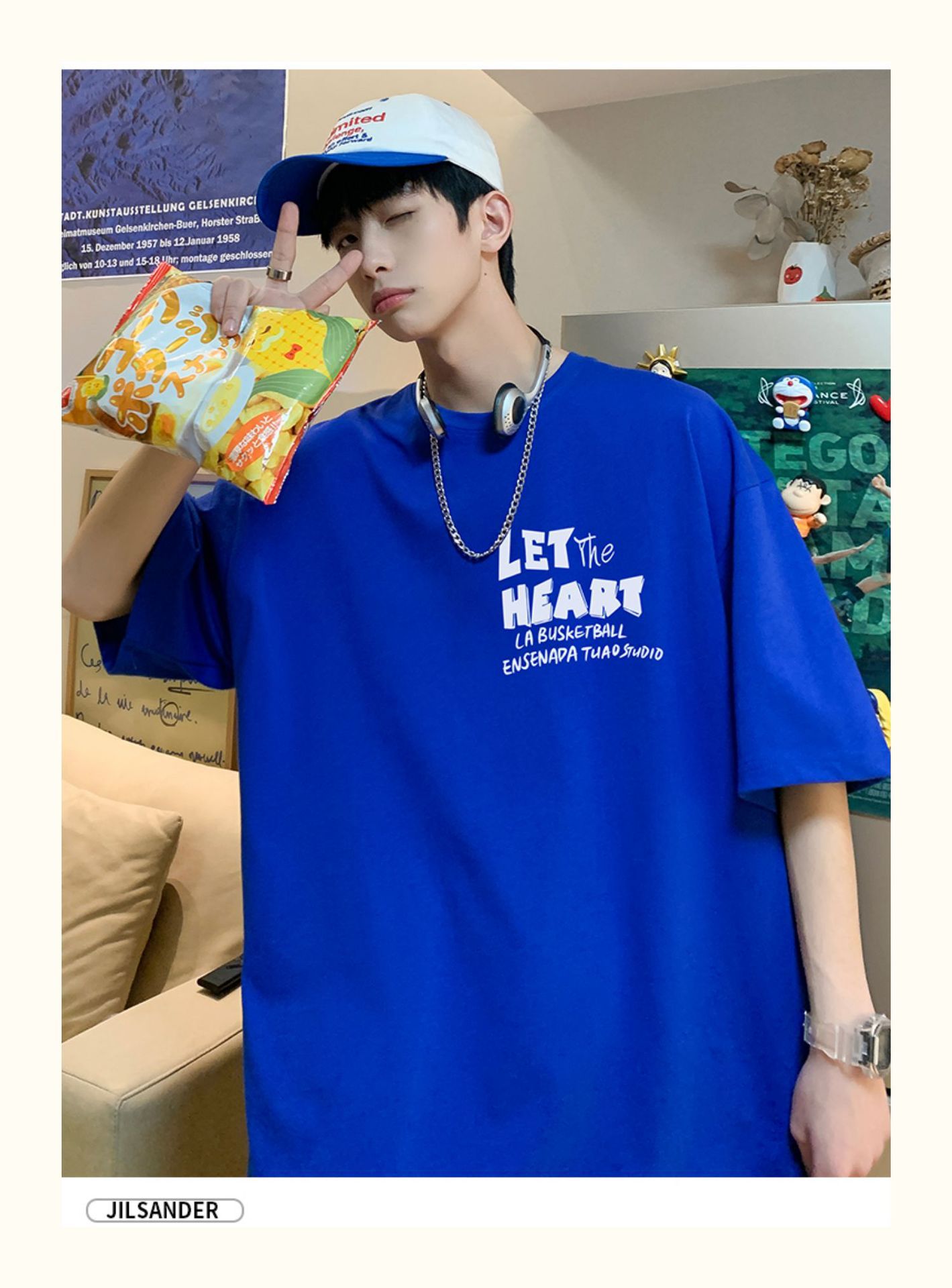 남성용 반팔 여름 티셔츠 Ins 트렌디 브랜드 트렌디 의류 디자인 틈새 퓨어 코튼 올매치 느슨한 반소매 티셔츠