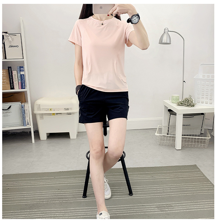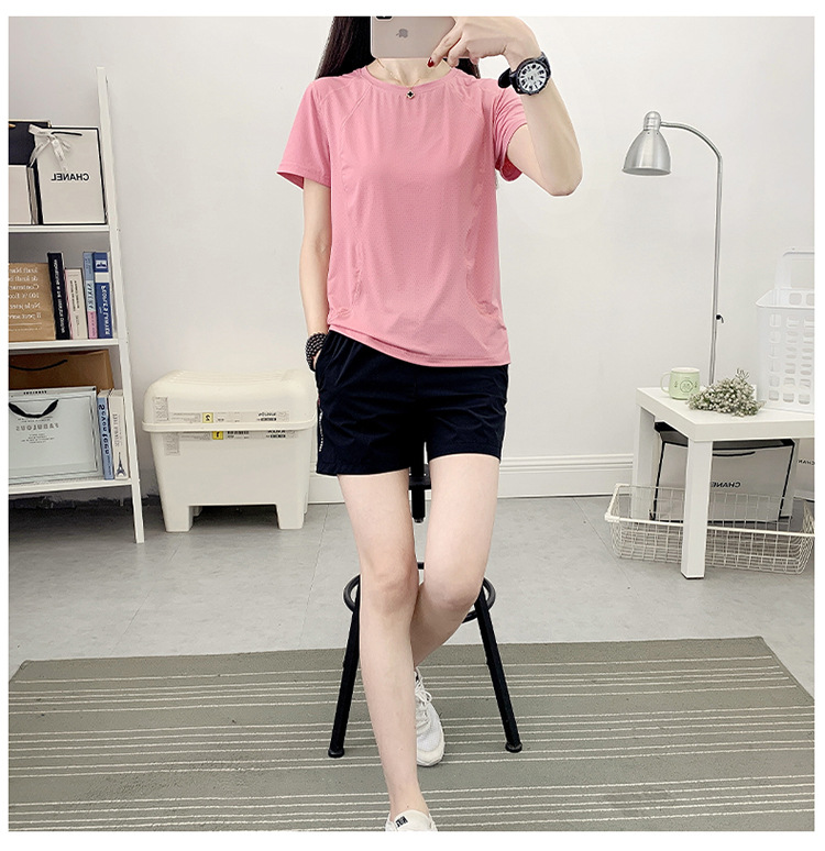 크루 넥 티셔츠 느슨한 빠른 건조 옷 여성 스포츠 캐주얼 빠른 건조 옷 통기성 반소매 티셔츠 높은 탄성 통기성 빠른 건조 옷스토어 가기
