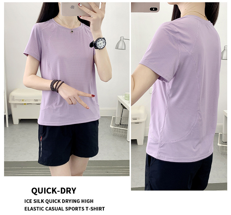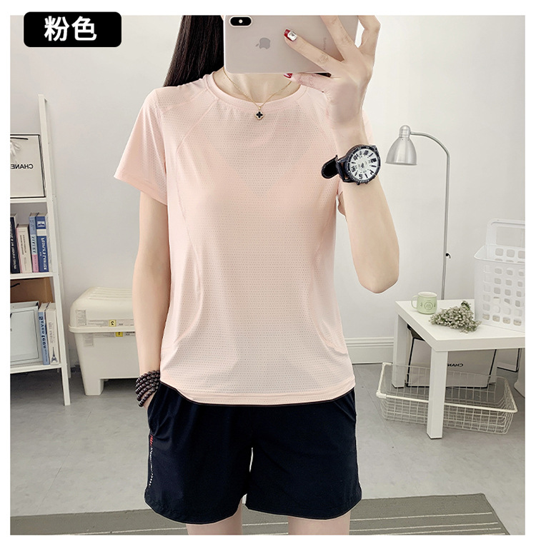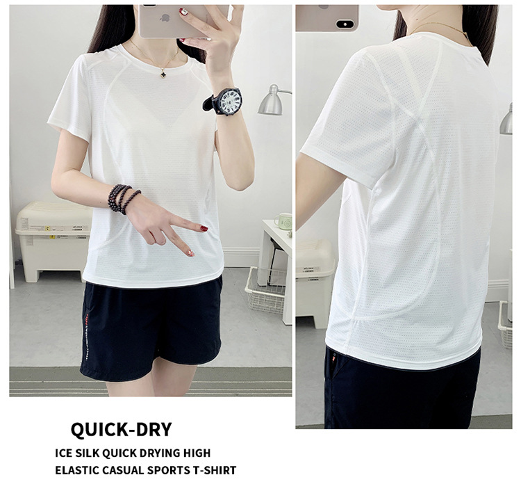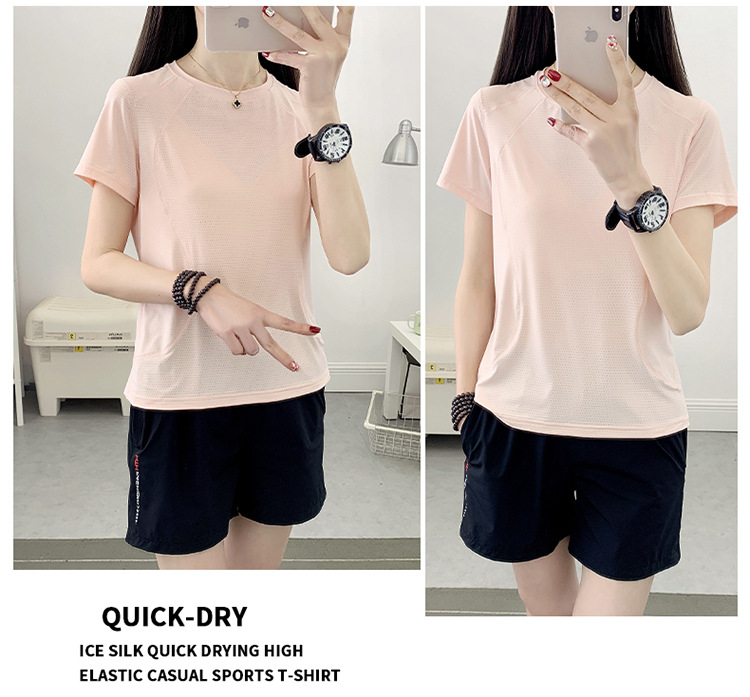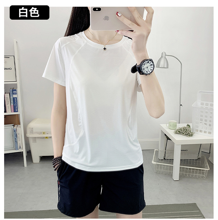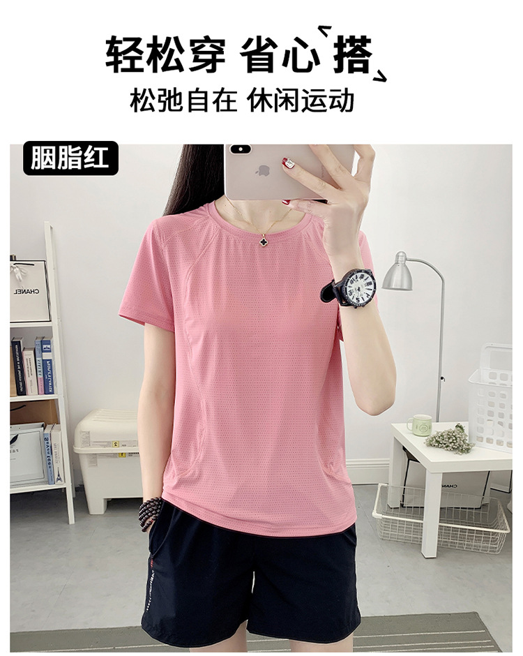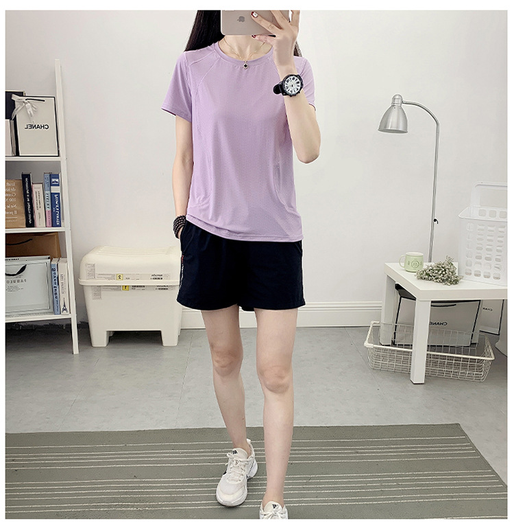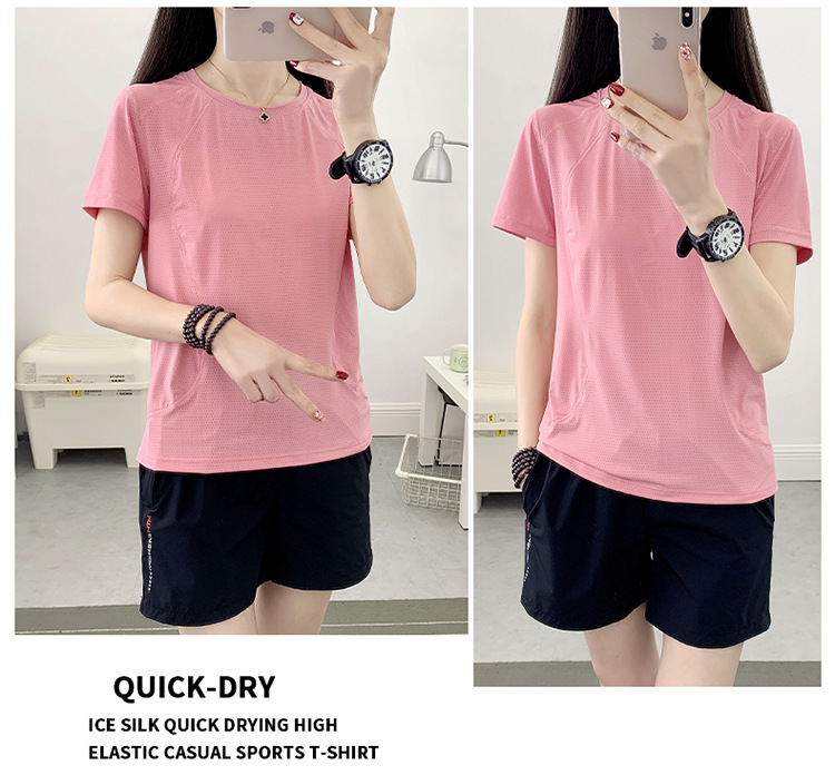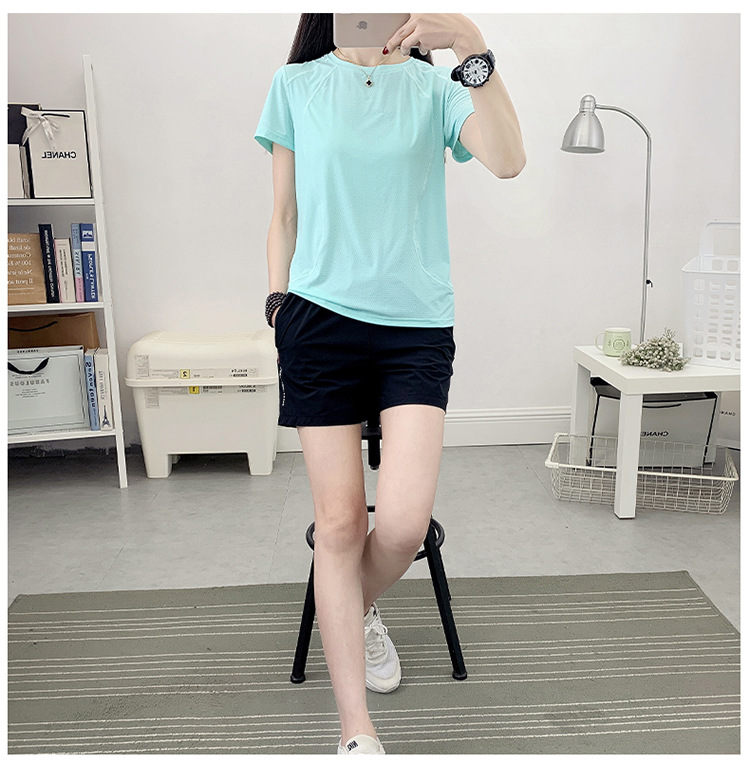크루 넥 티셔츠 느슨한 빠른 건조 옷 여성 스포츠 캐주얼 빠른 건조 옷 통기성 반소매 티셔츠 높은 탄성 통기성 빠른 건조 옷