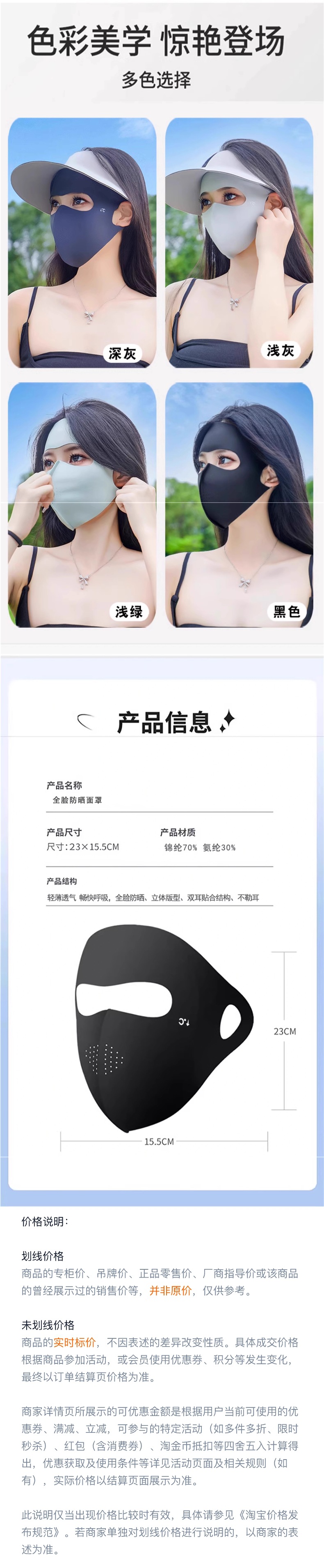 선스크린 마스크 여성의 여름 마스크 여성의 얼굴 전체 얼굴 UV 보호 아이 앵글 마스크 남성의 여름 선 스크린 마스크스토어 가기