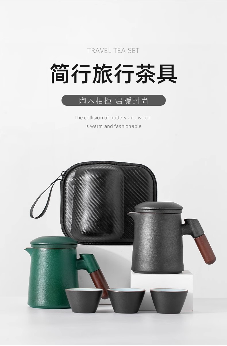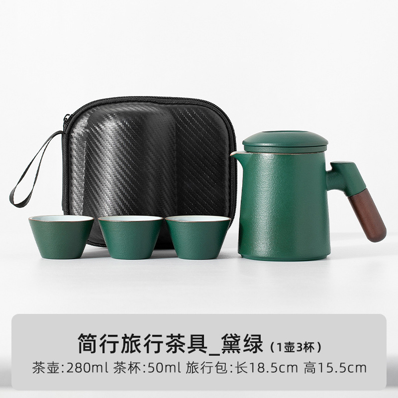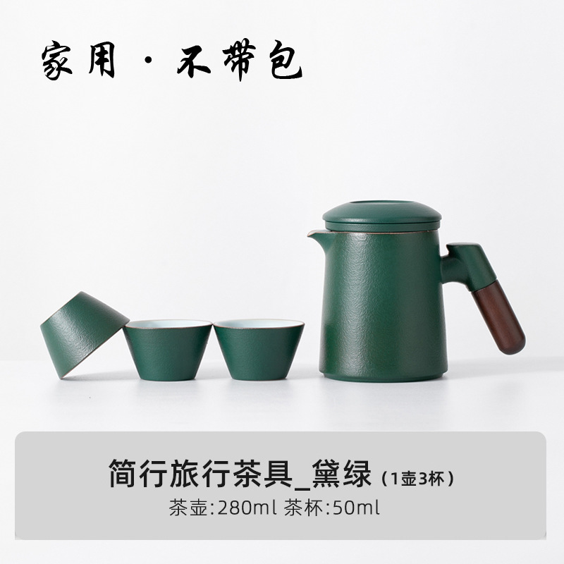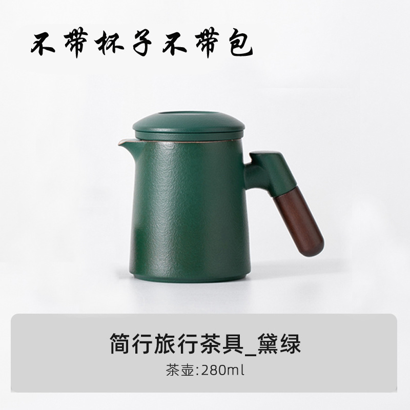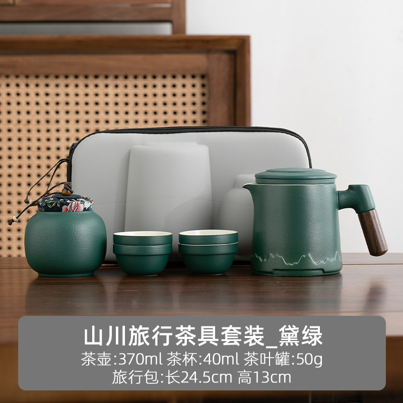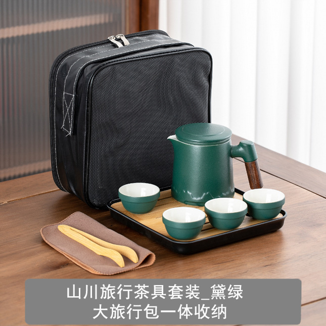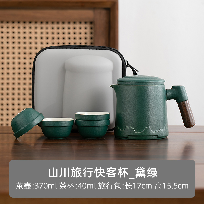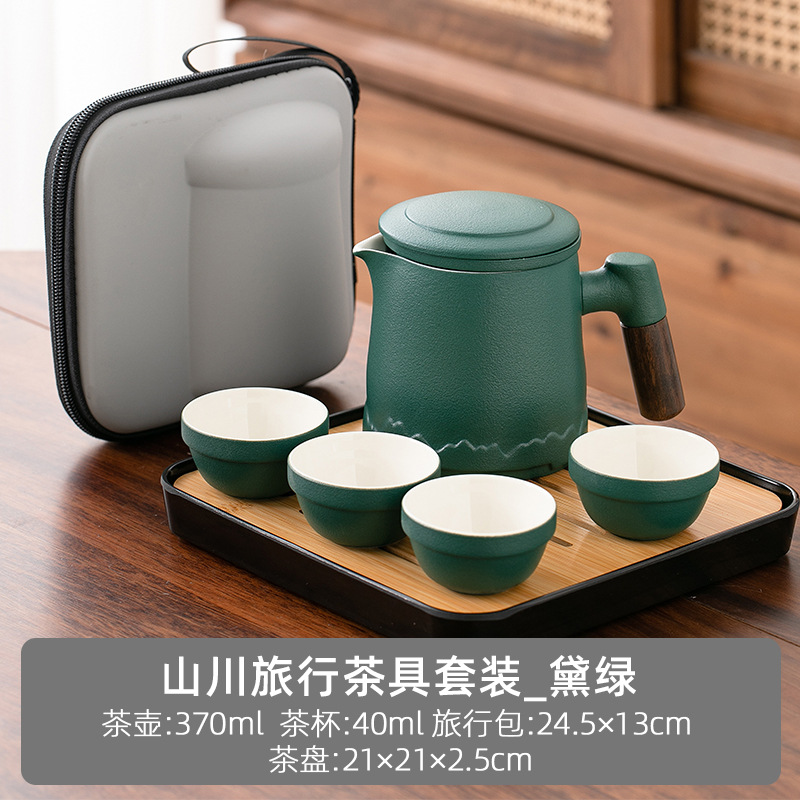 • 신산루 여행 냄비 4컵 + 휴대용 가방 + 차 트레이 - 다크 그린